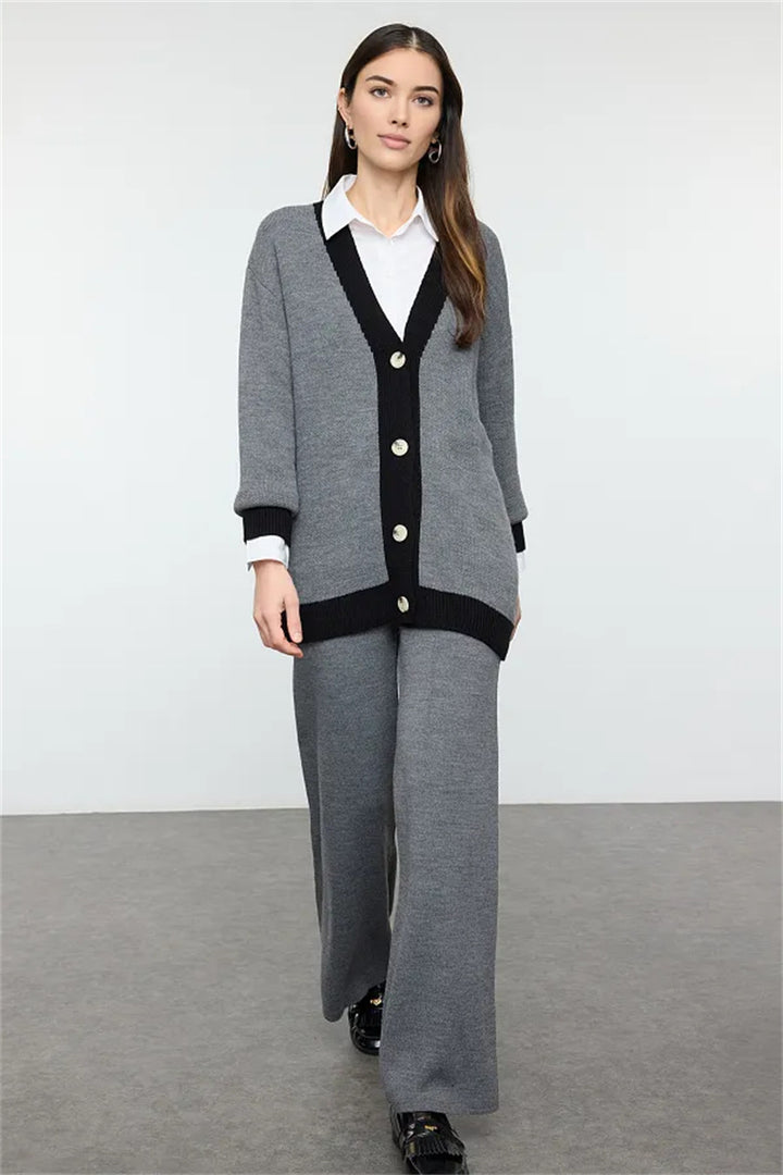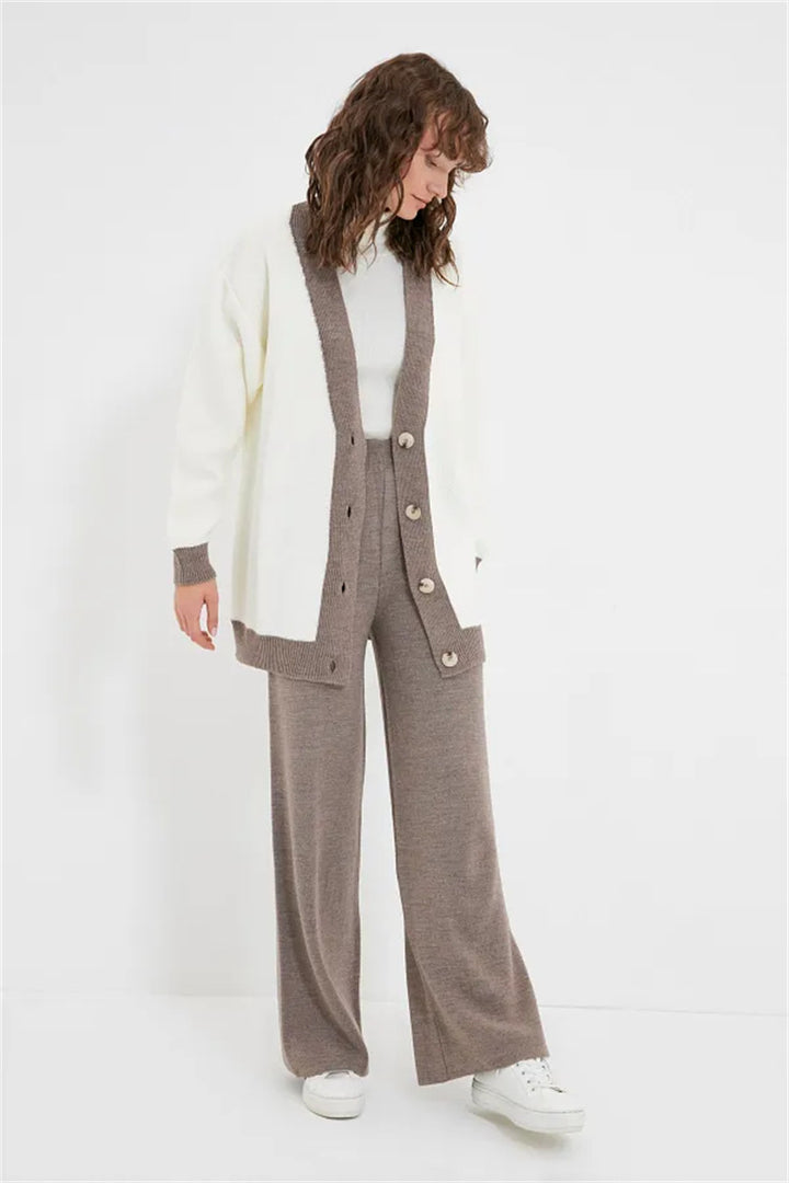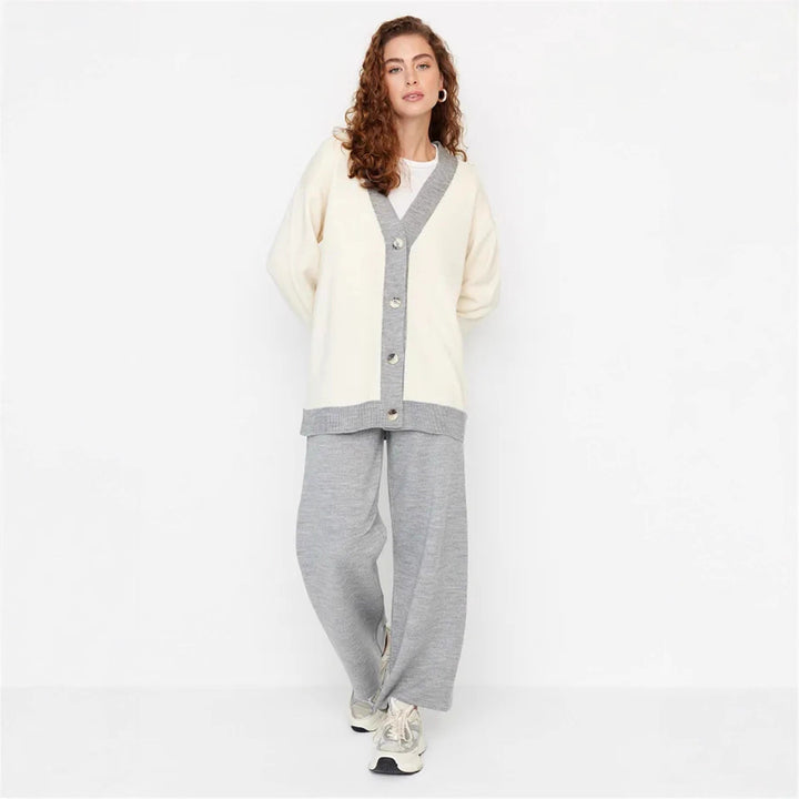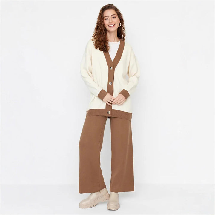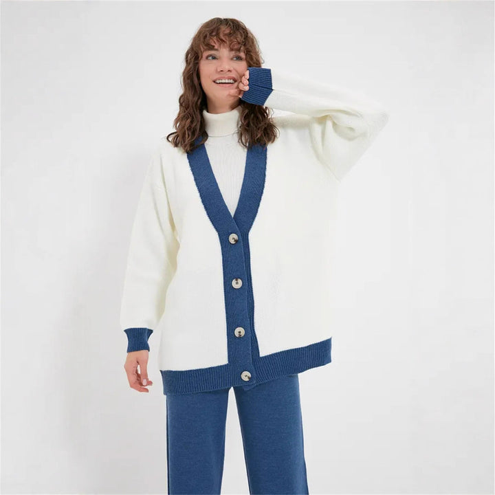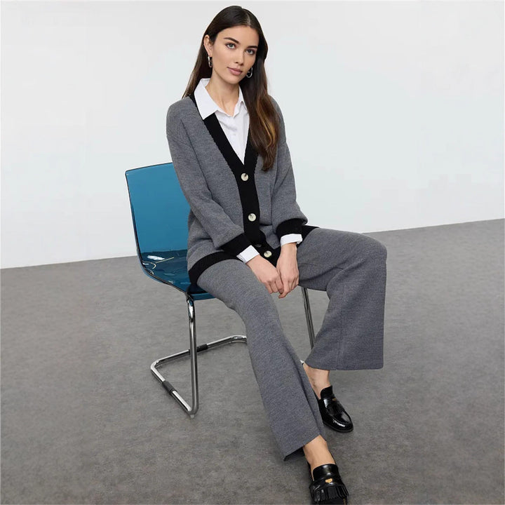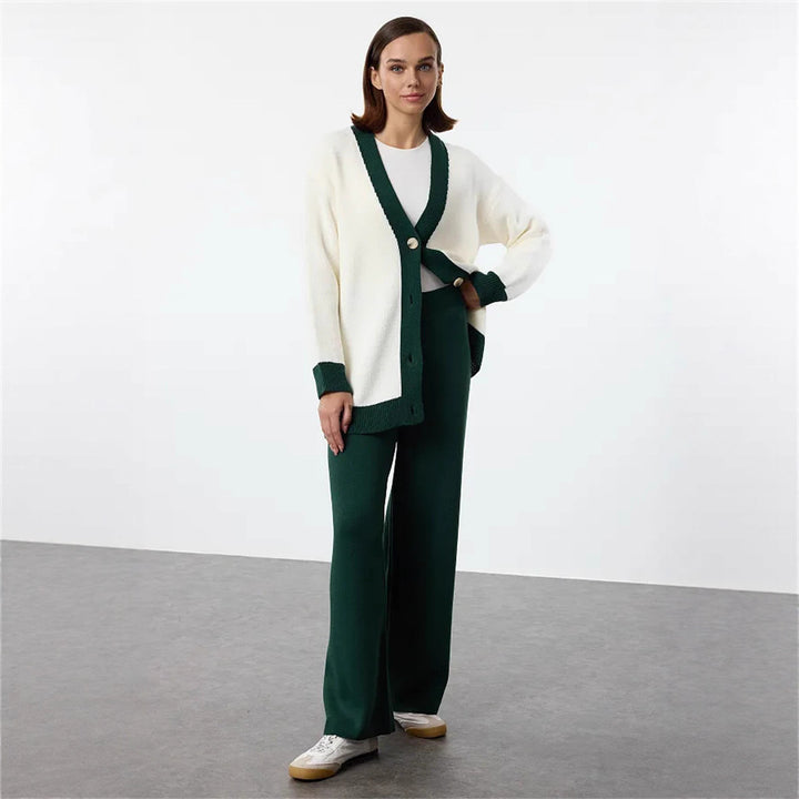 New casual women's clothing color matching long-sleeved button sweater cardigan trousers fashion suit contrasting suit