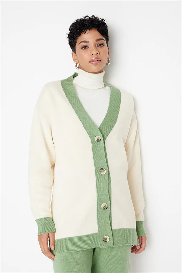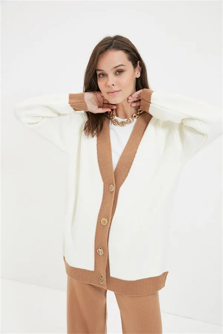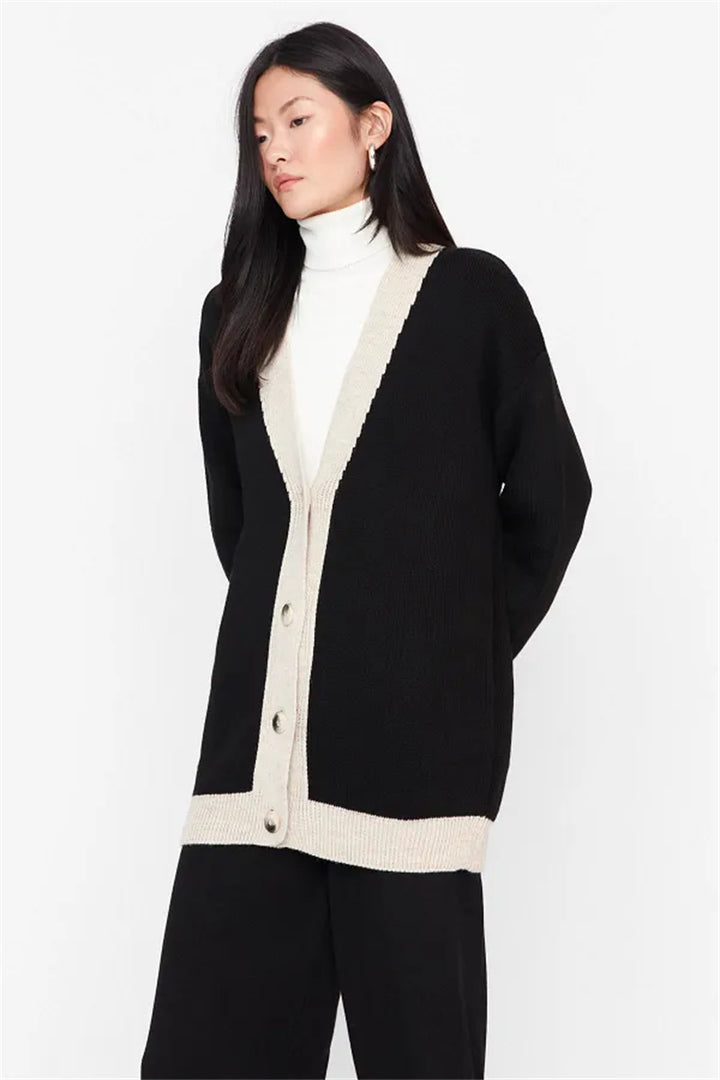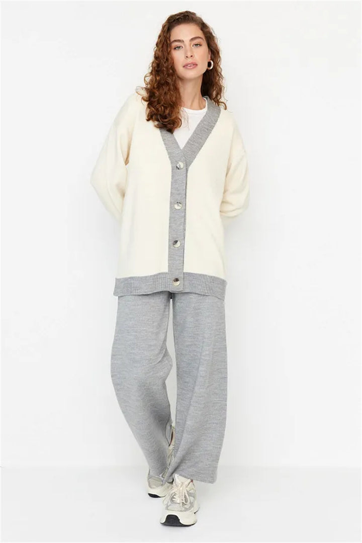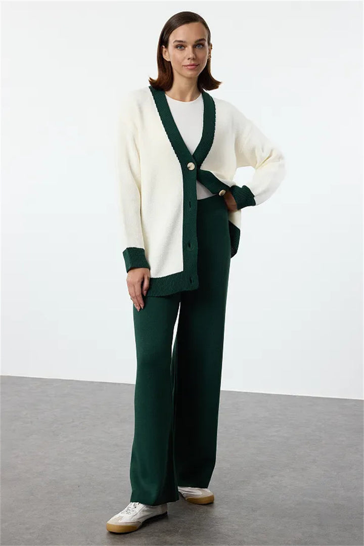 New casual women's clothing color matching long-sleeved button sweater cardigan trousers fashion suit contrasting suit