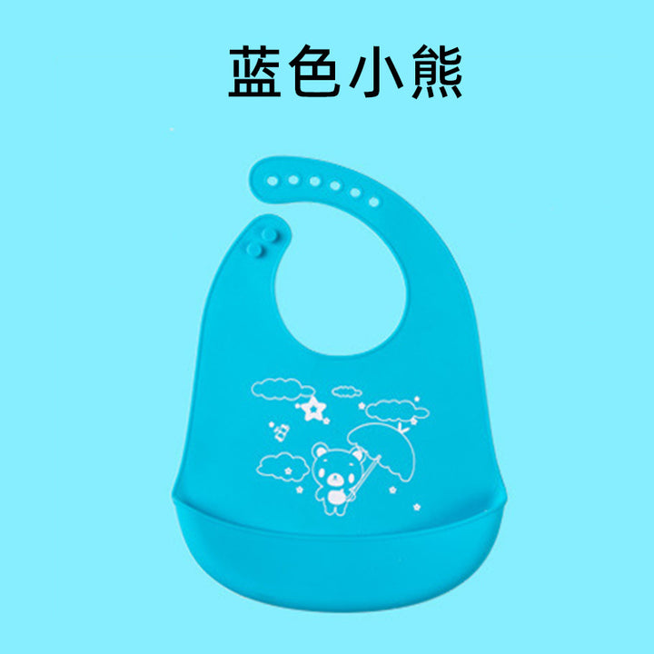 New children's bib rice pocket baby waterproof rice pocket children's printed animal solid co...