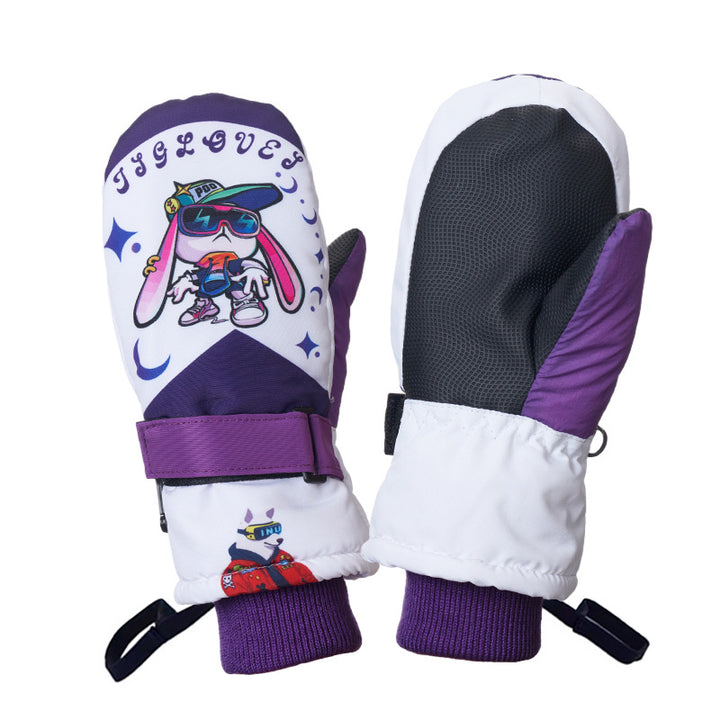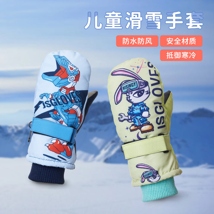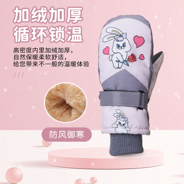 New children's gloves winter velvet warm waterproof windproof baby finger winter children's ski gloves wholesale
