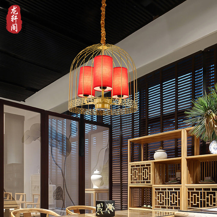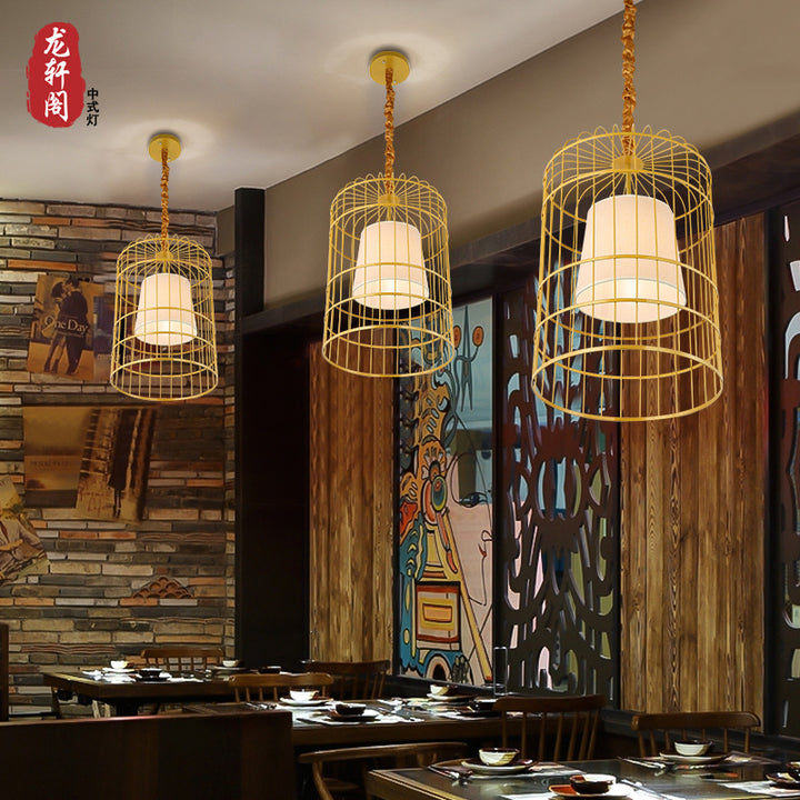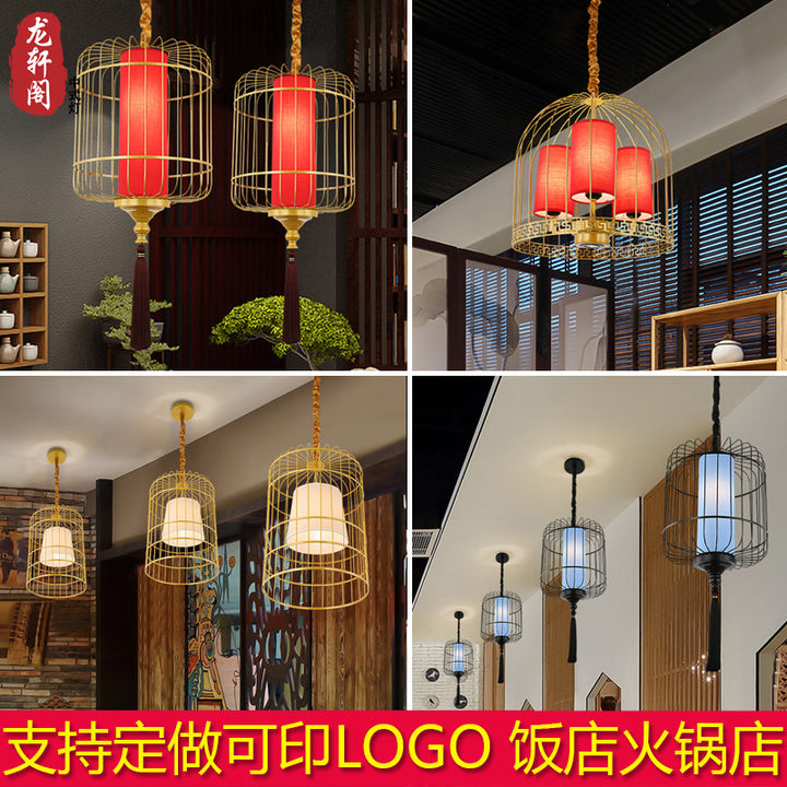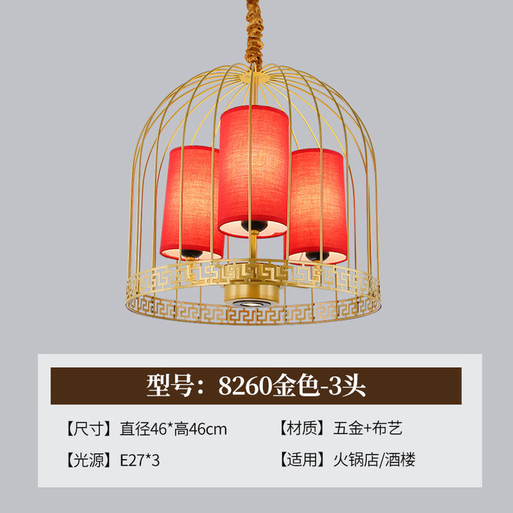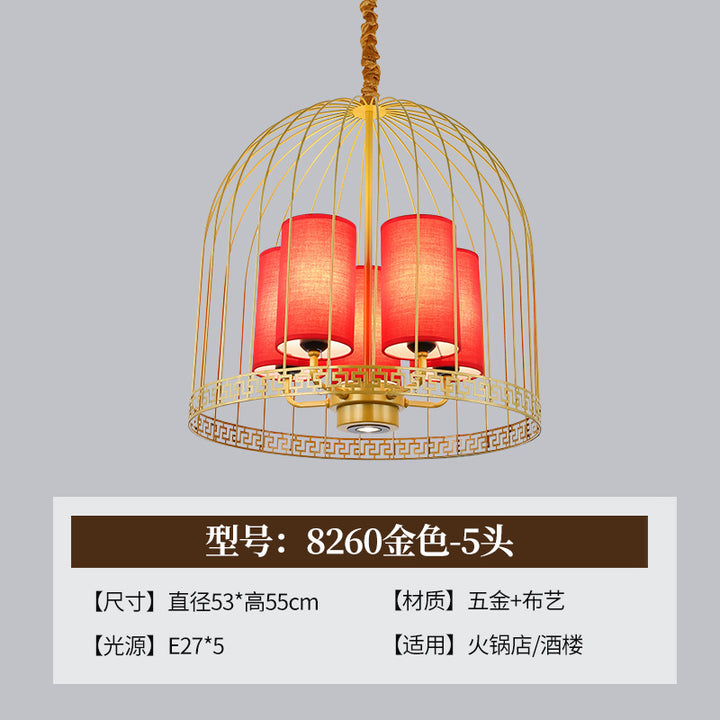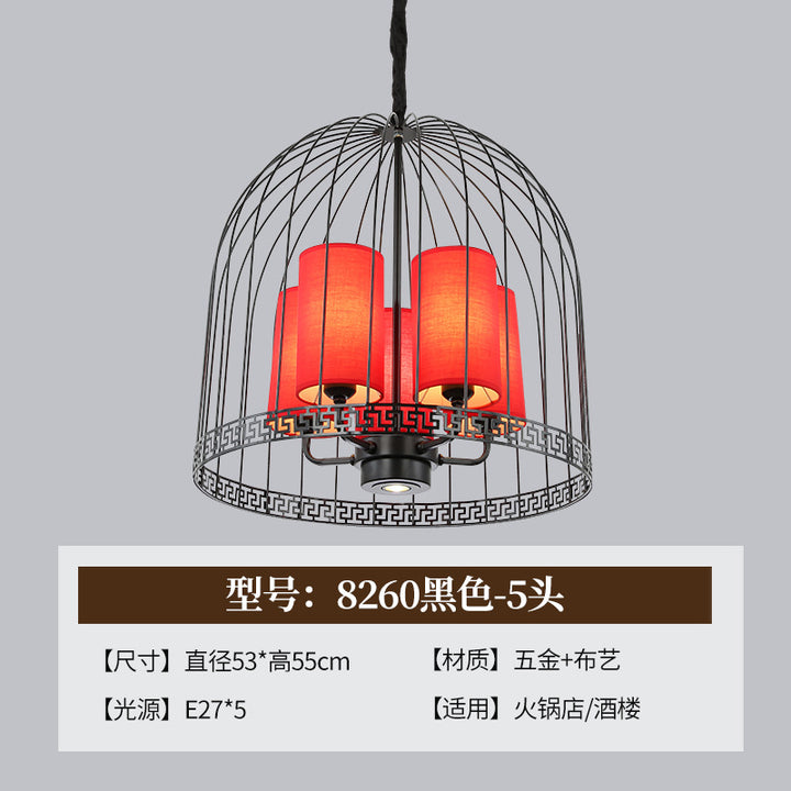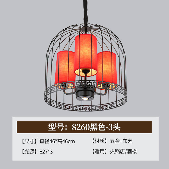 New Chinese chandelier wrought iron bird cage restaurant lighting creative bar lamp hot pot r...