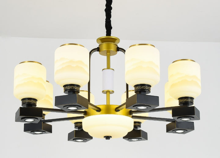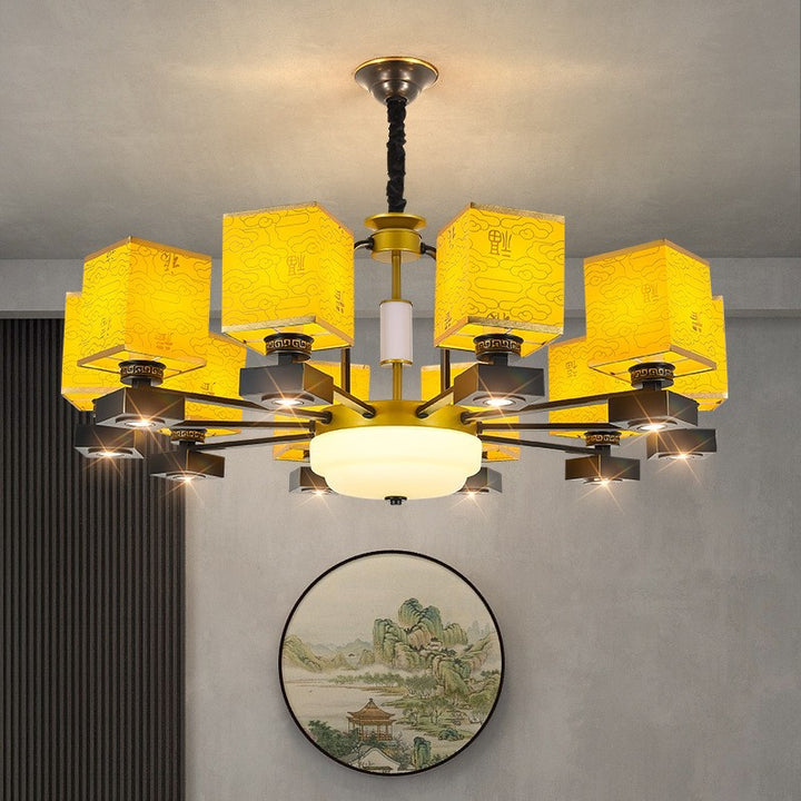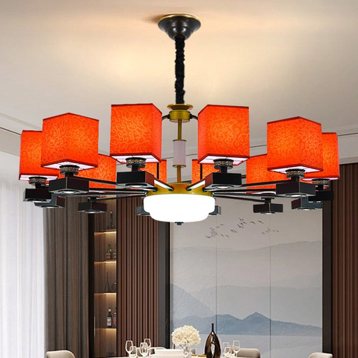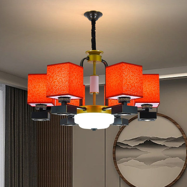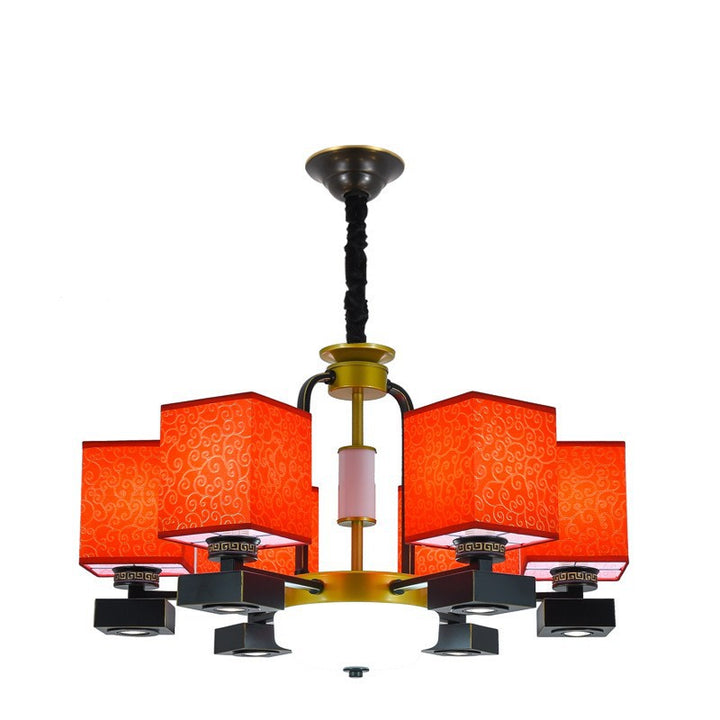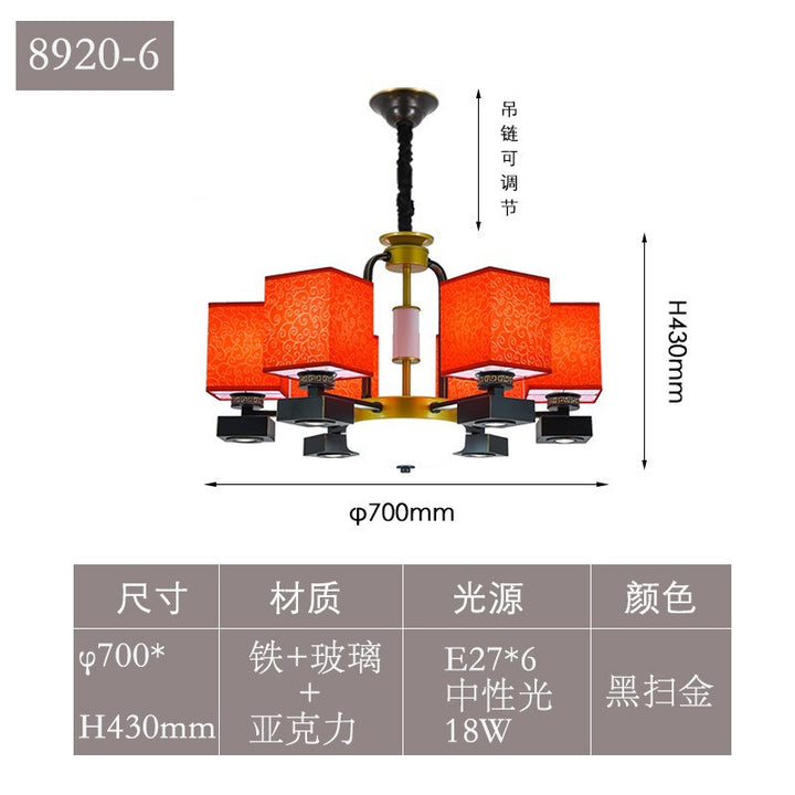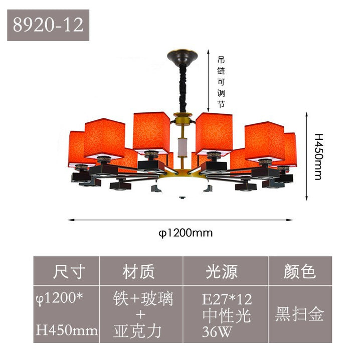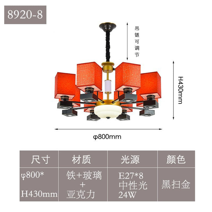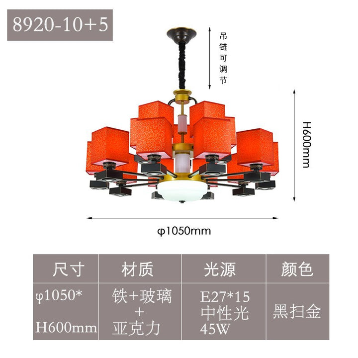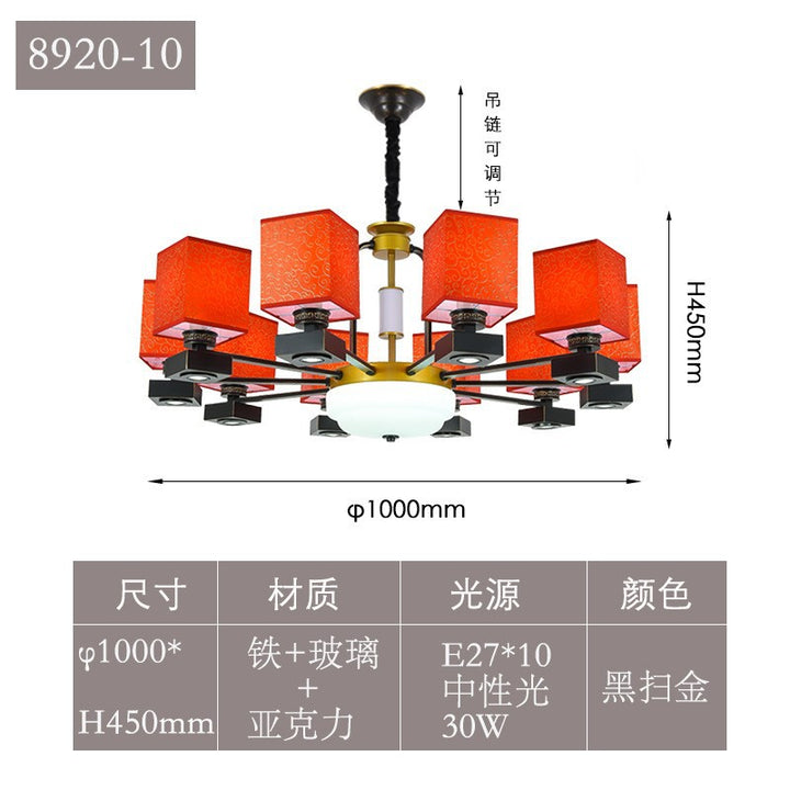 New Chinese lantern restaurant chandelier with spotlight hot pot restaurant restaurant restaurant Chinese style retro fabric living room lamps