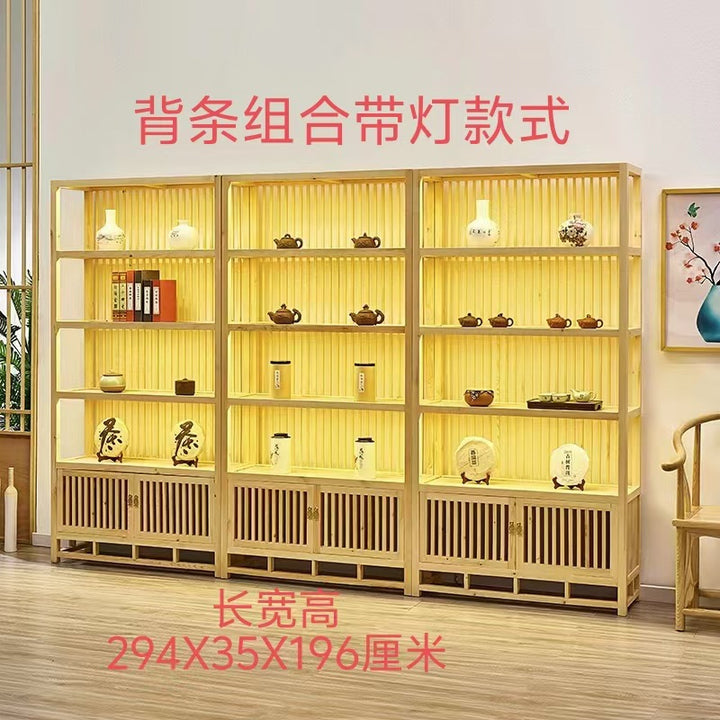 New Chinese Solid Wood Duobao Pavilion Solid Wood Display Cabinet Tea Shelf Tea Room Partition Shelf Display Cabinet