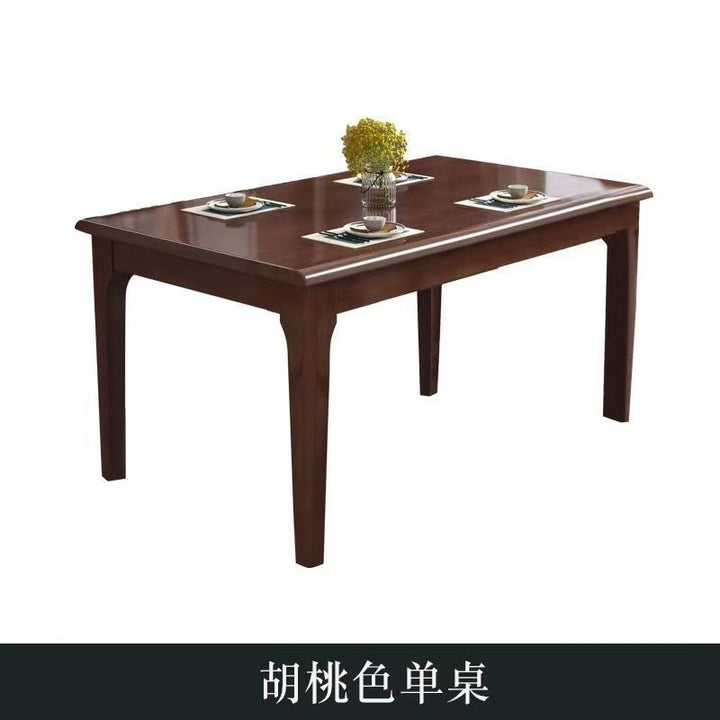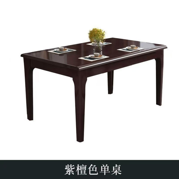 Red sandalwood single dining table, Walnut single dining table, Log color single dining table, Red sandalwood one table and four chairs, Red sandalwood one table and six chairs, Walnut one table and four chairs, Walnut one table and six chairs, One table and four chairs in log color, One table and six chairs in log color |