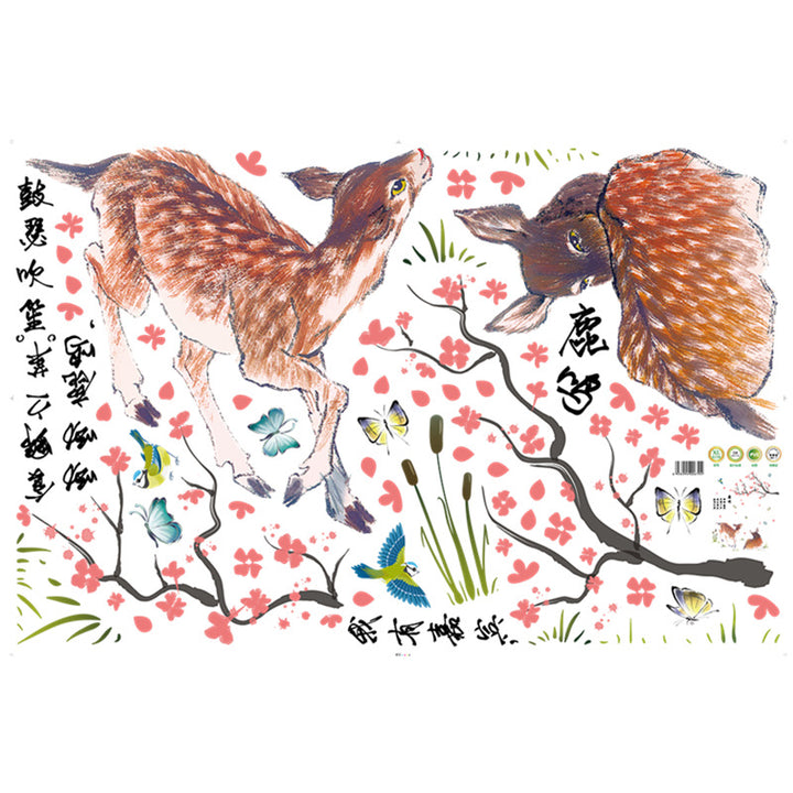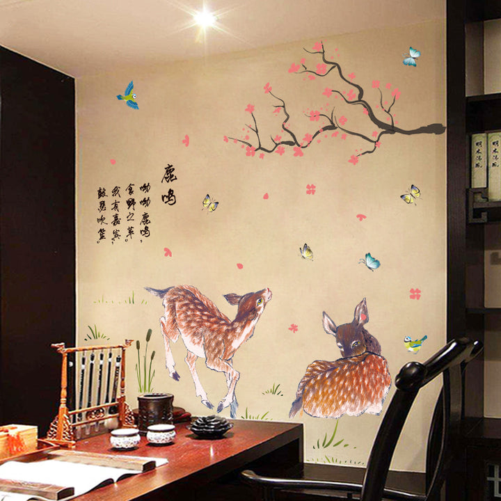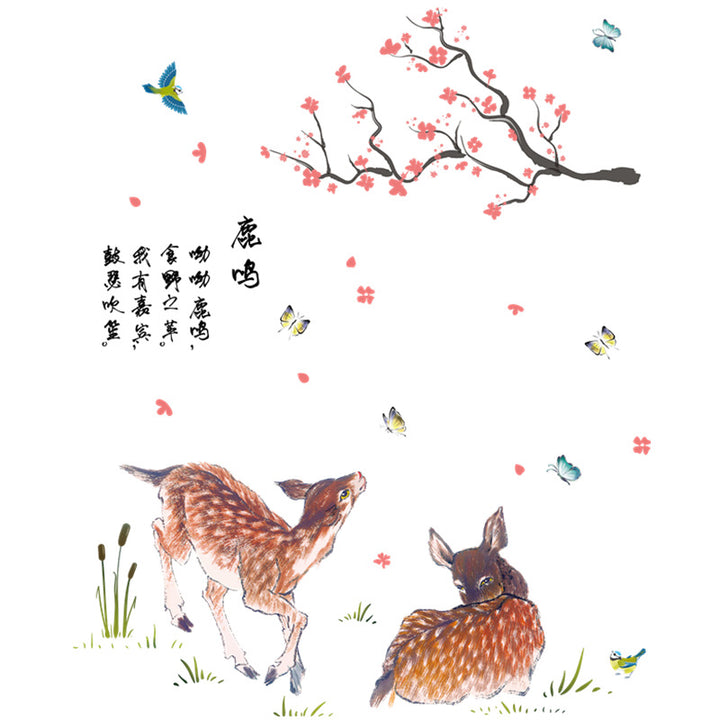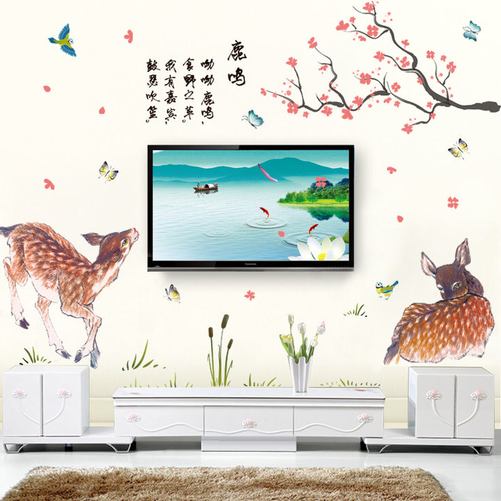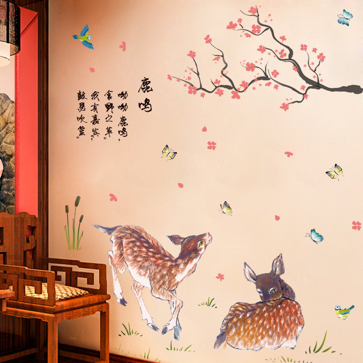New Chinese style deer sound wall sticker bedroom living room sofa background pvc non-marking glue, self-adhesive mural XL8238