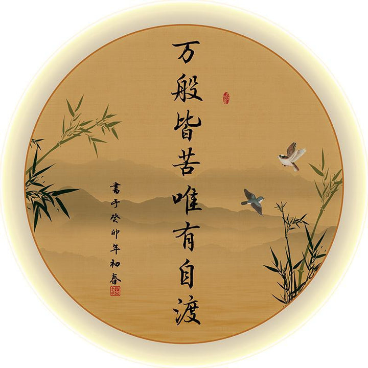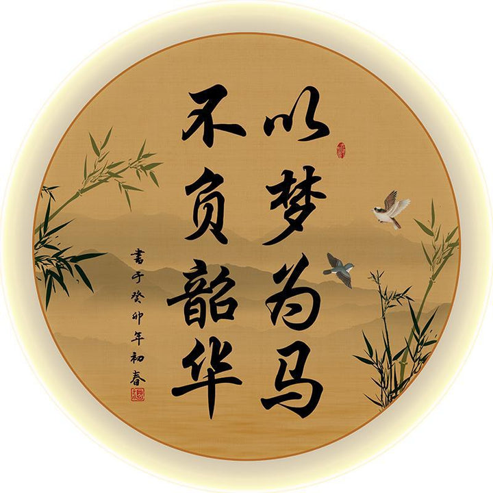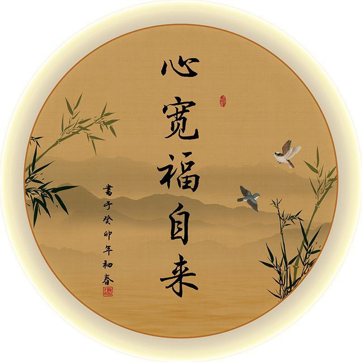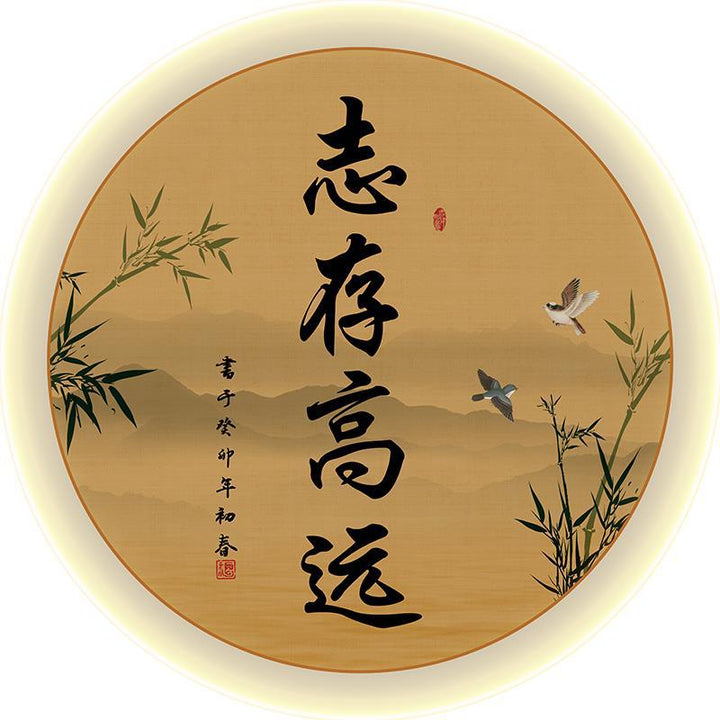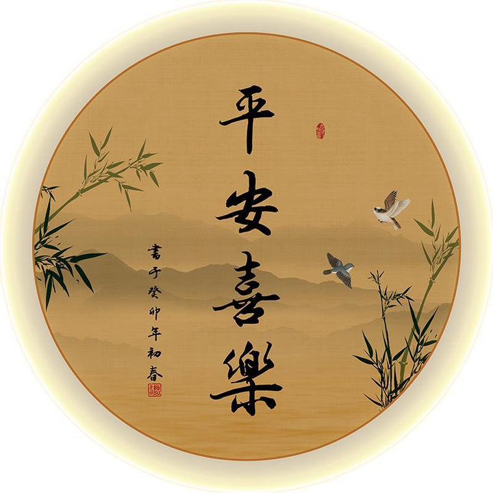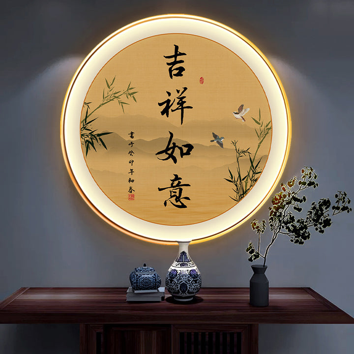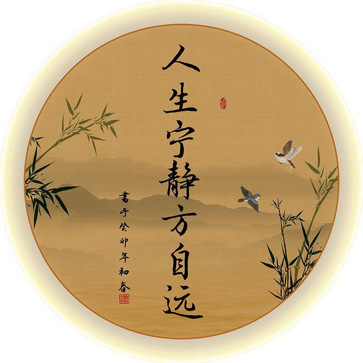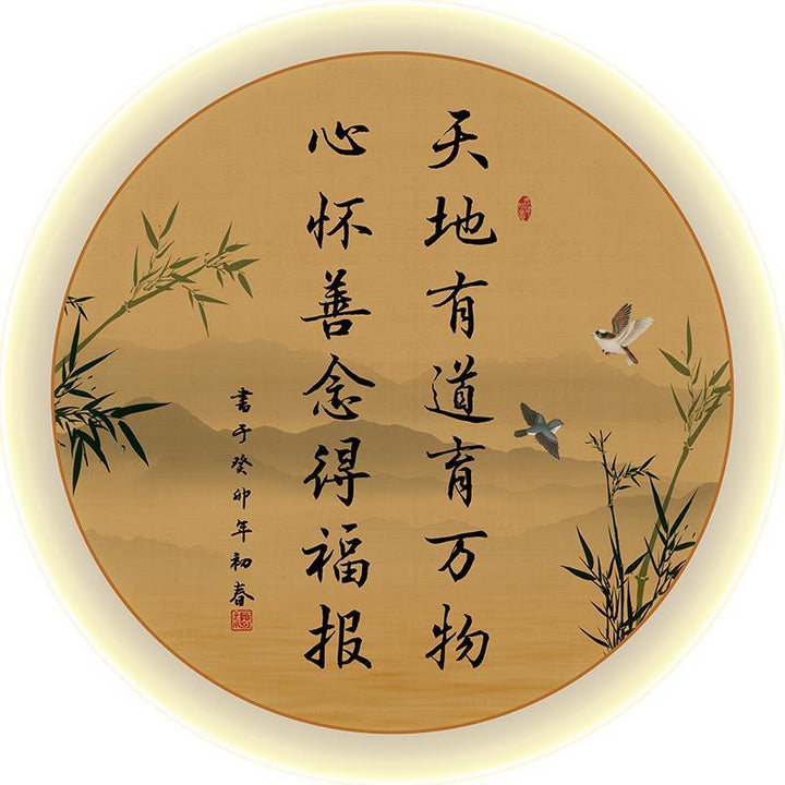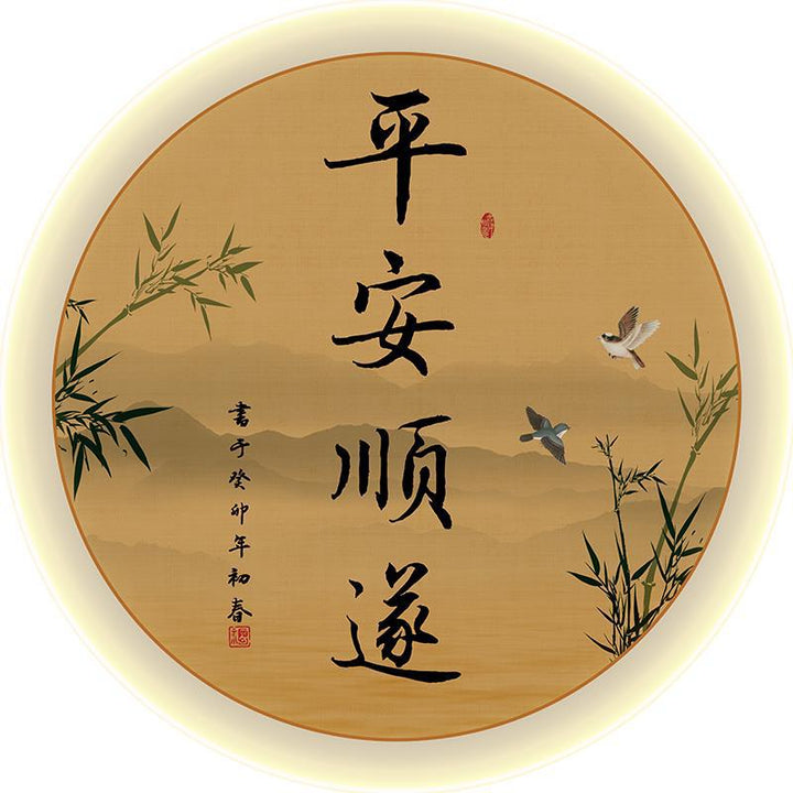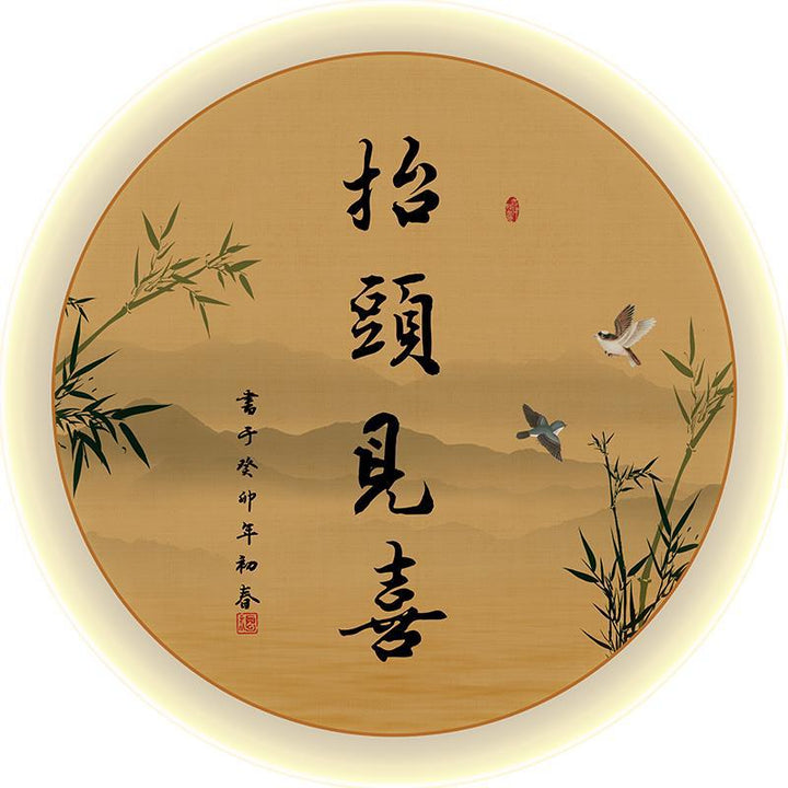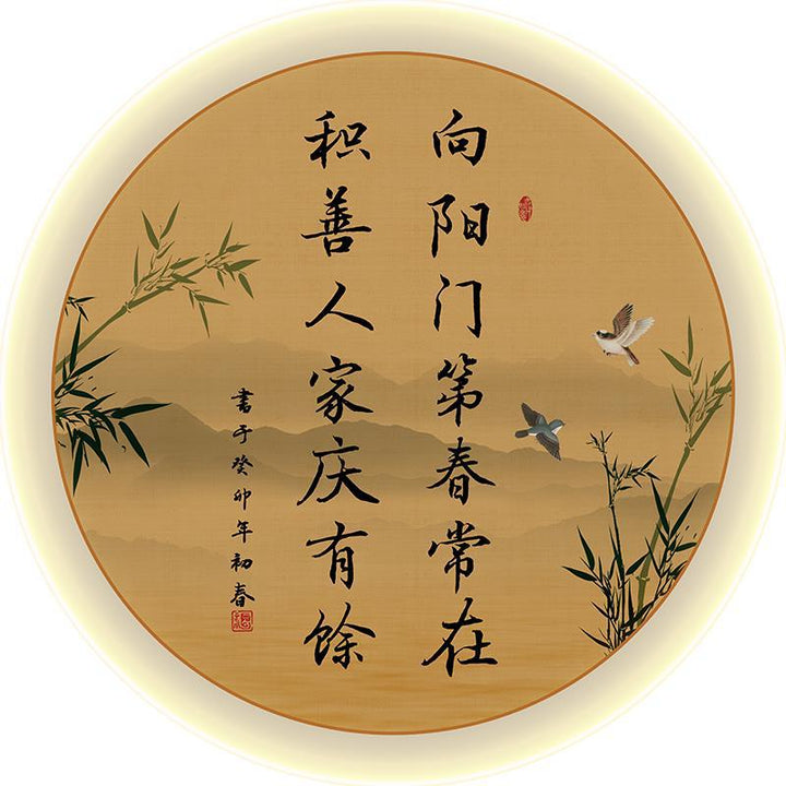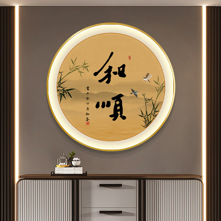 New Chinese style entrance decorative painting circular luminous painting, mural at the end of the corridor, tea room study flower and bird paintin...