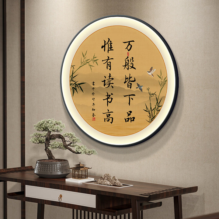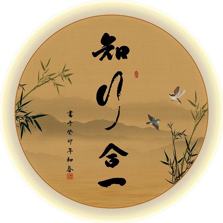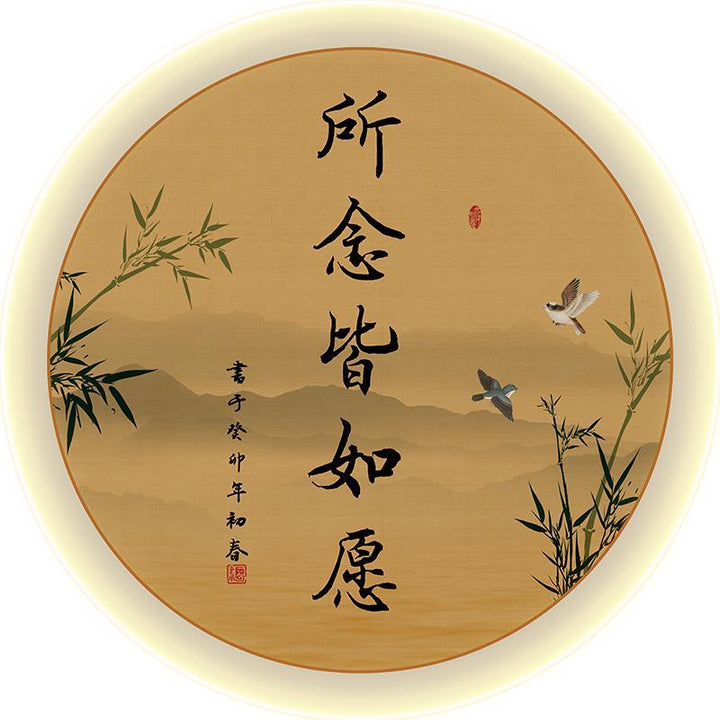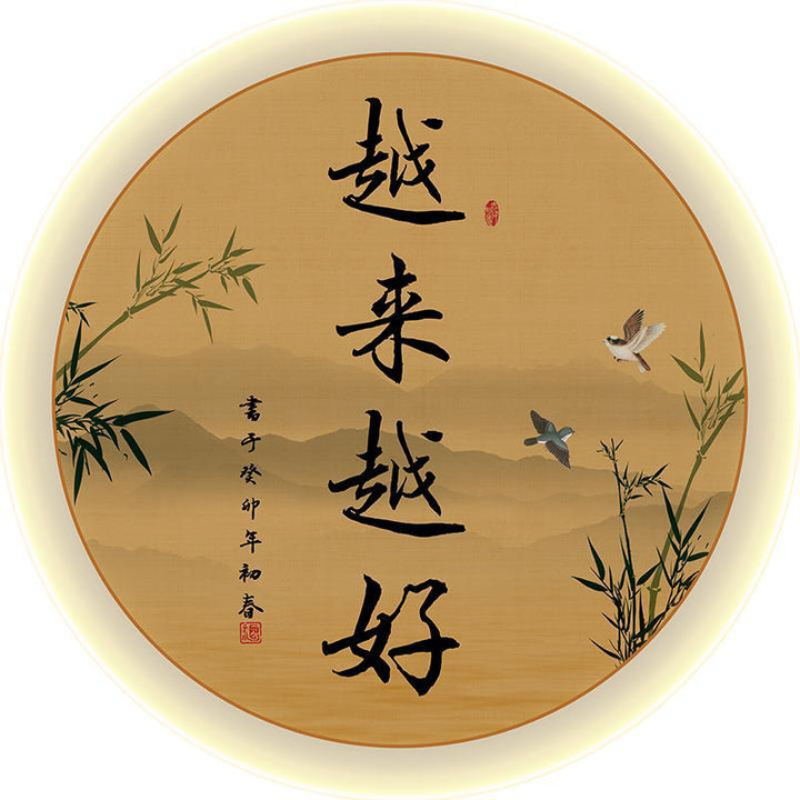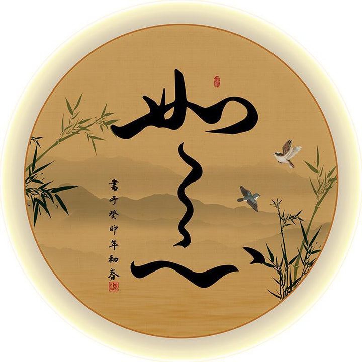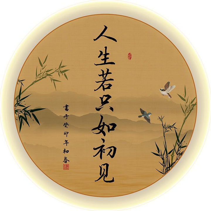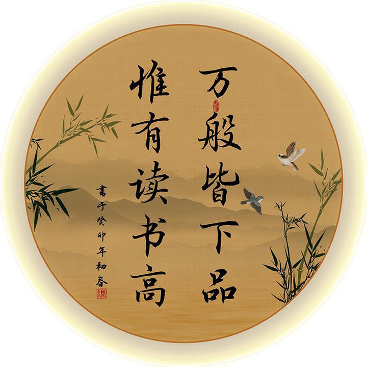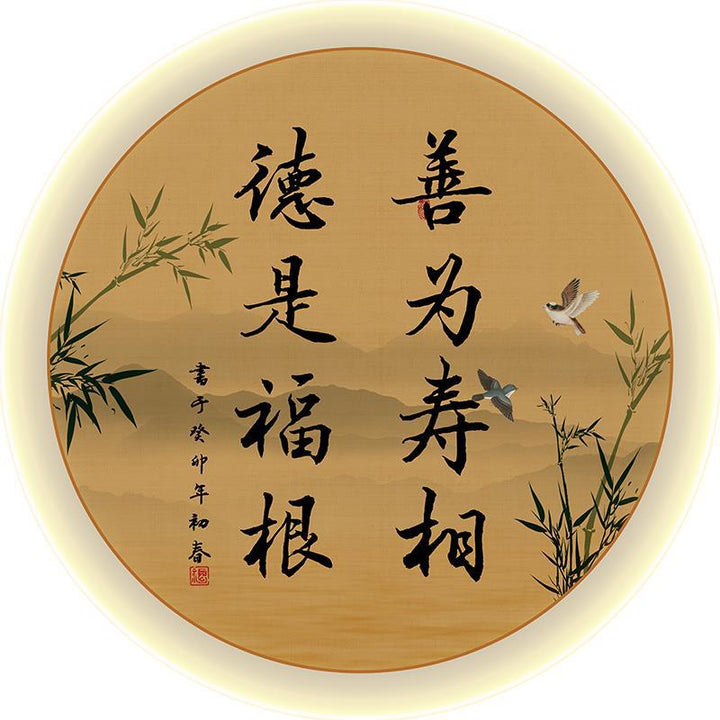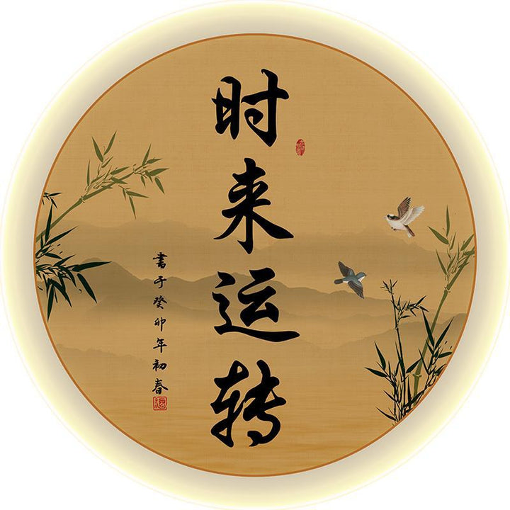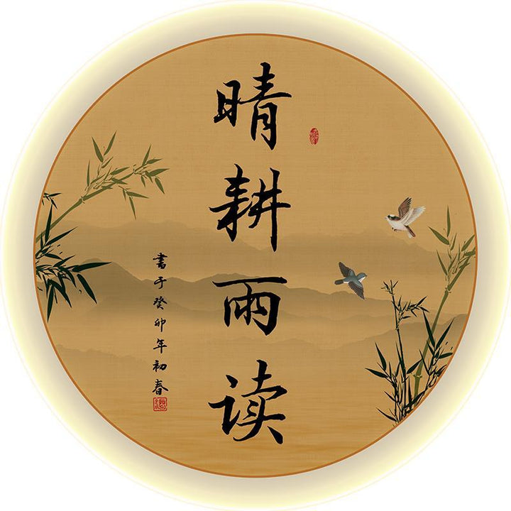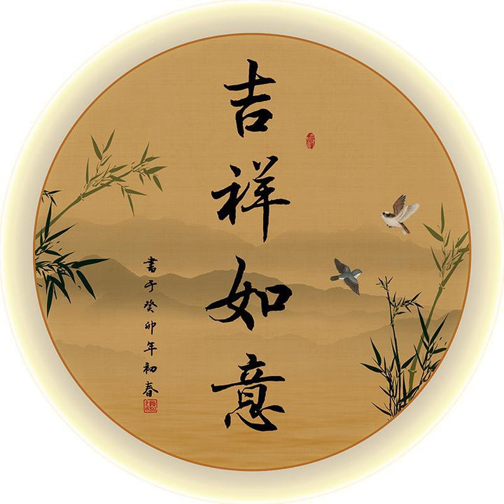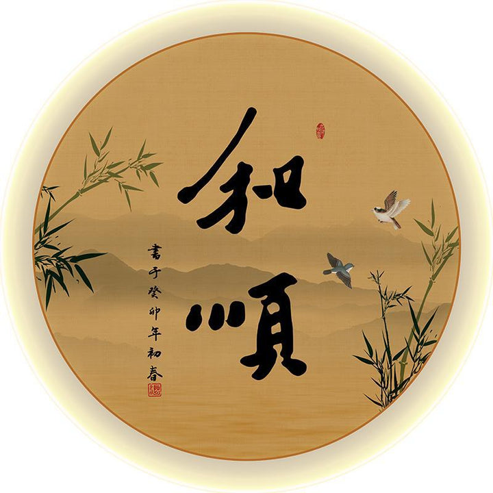New Chinese style entrance decorative painting circular luminous painting, mural at the end of the corridor, tea room study flower and bird paintin...