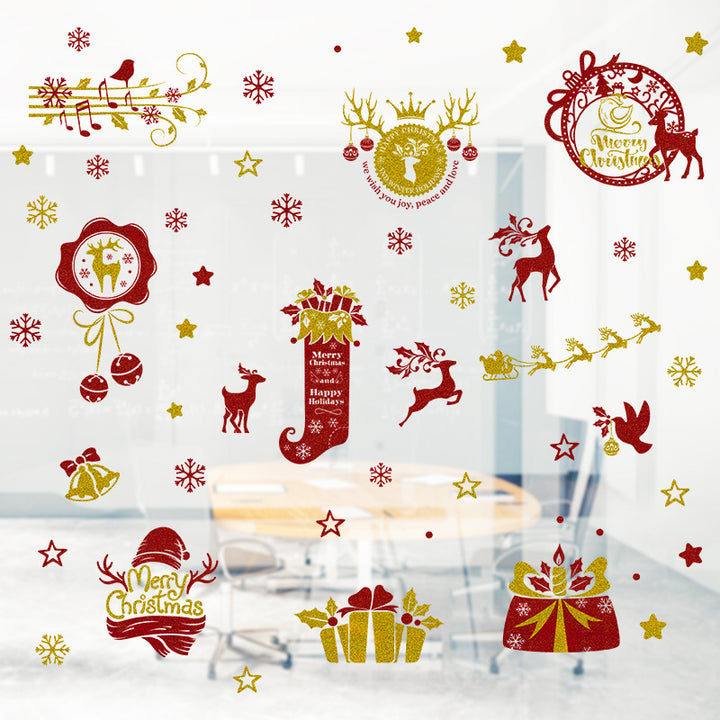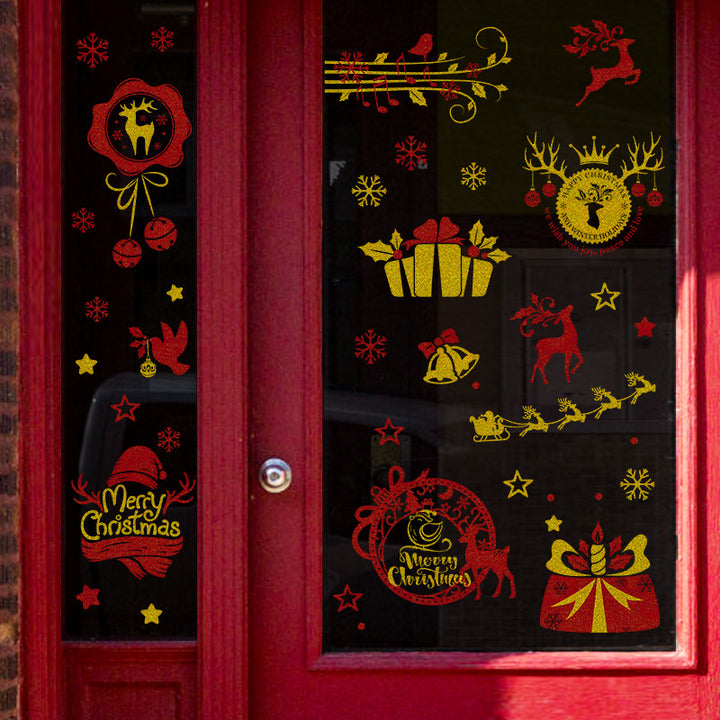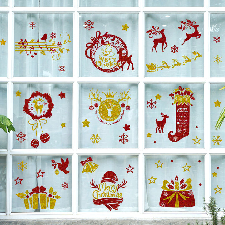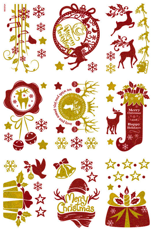New Christmas decorations, bronzing powder sprinkled with red powder, electrostatic glass doors and windows stickers, glue-free stickers HTJD2306