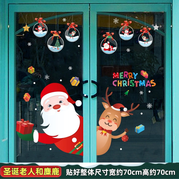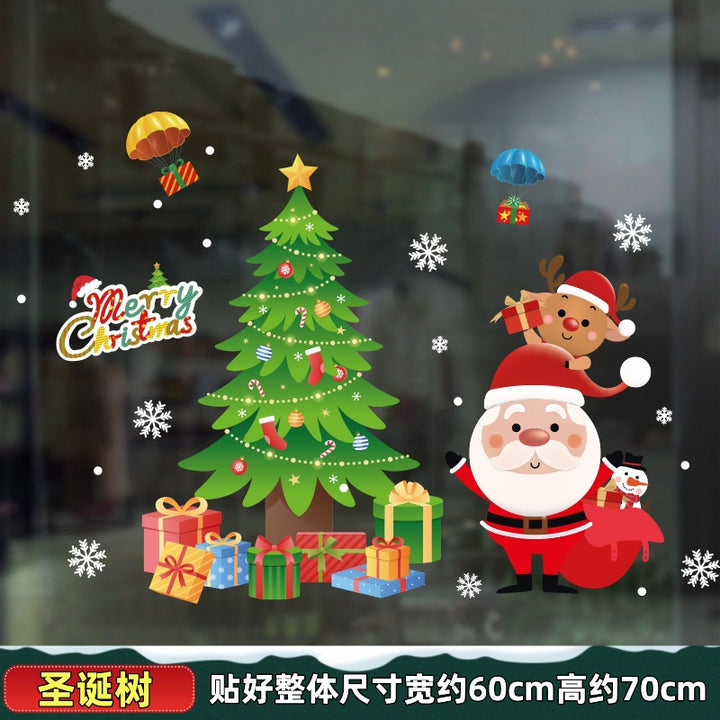 New Christmas decorations New Year wall stickers Self-adhesive stickers Window shopping mall store Christmas tree glass door stickers