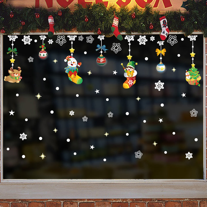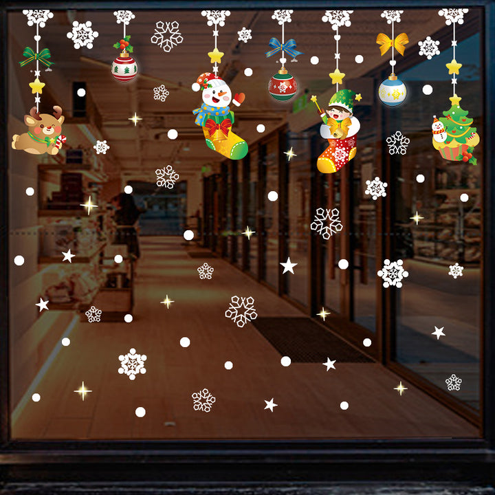 New Christmas Snowflake Stickers Christmas Snowman Greetings Window Stickers New Year Ornamen...