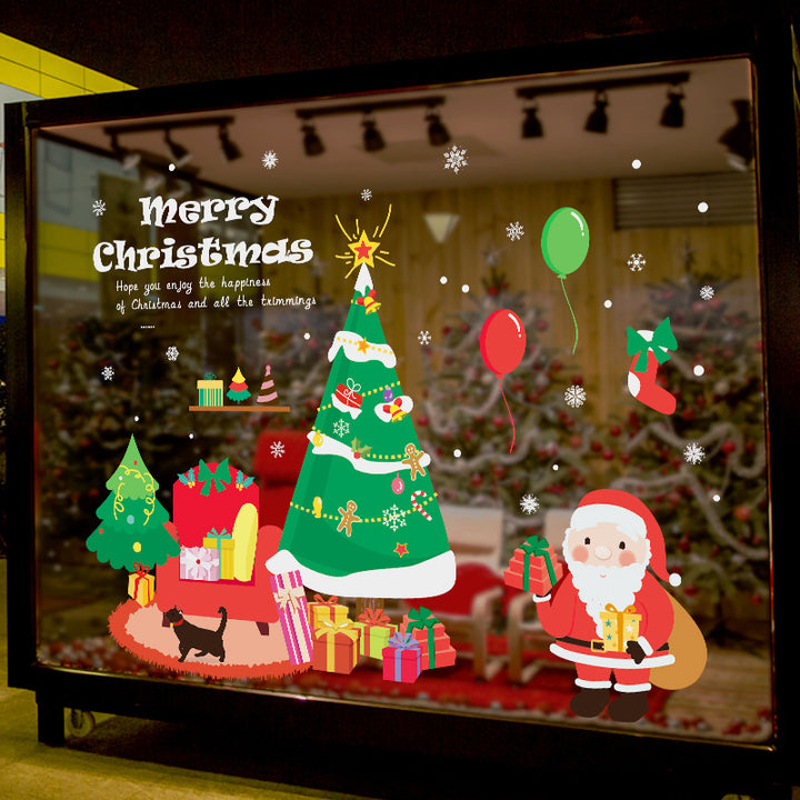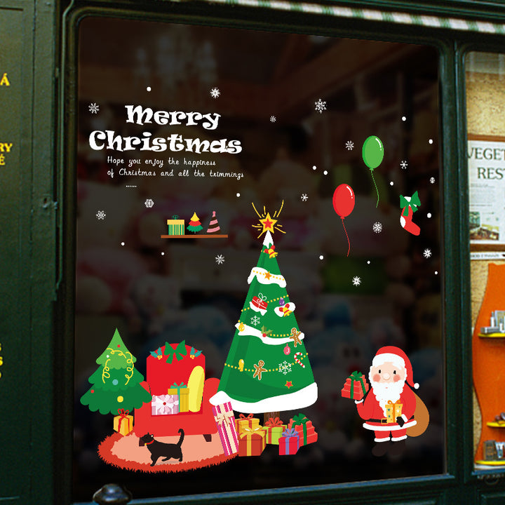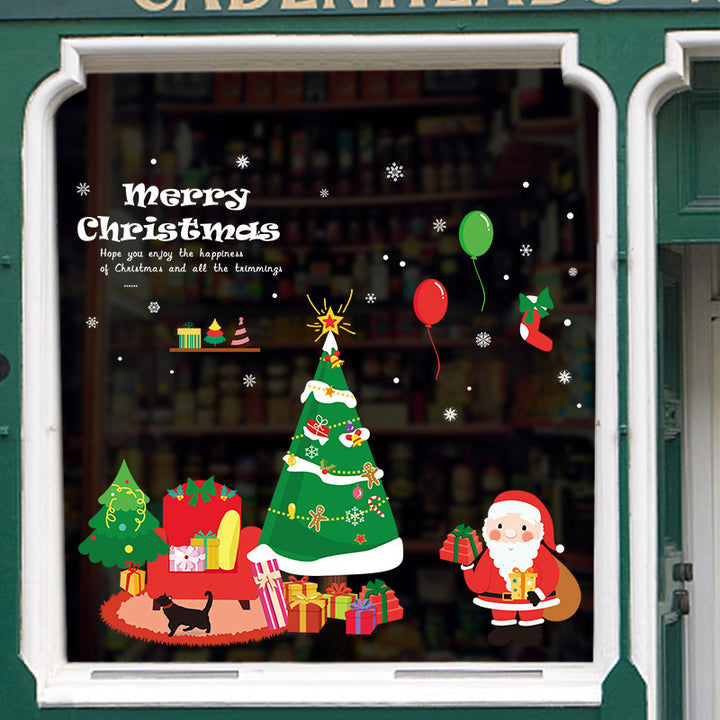 New Christmas tree cartoon wall sticker living room shopping mall window glass wall removable...