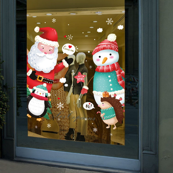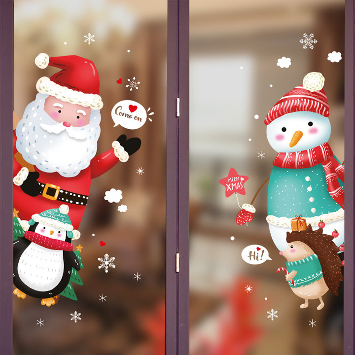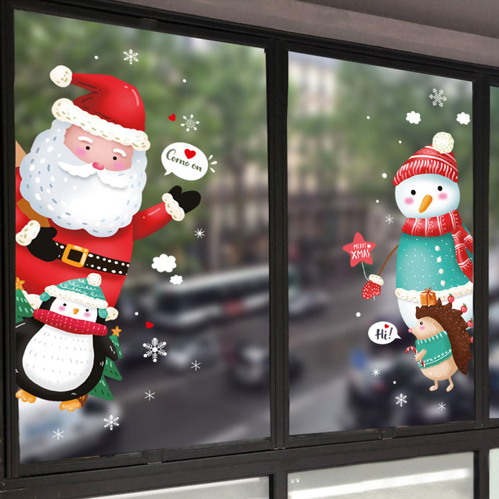 New Christmas window sticker double-sided transparent pvc glass sticker Santa snowman decorat...