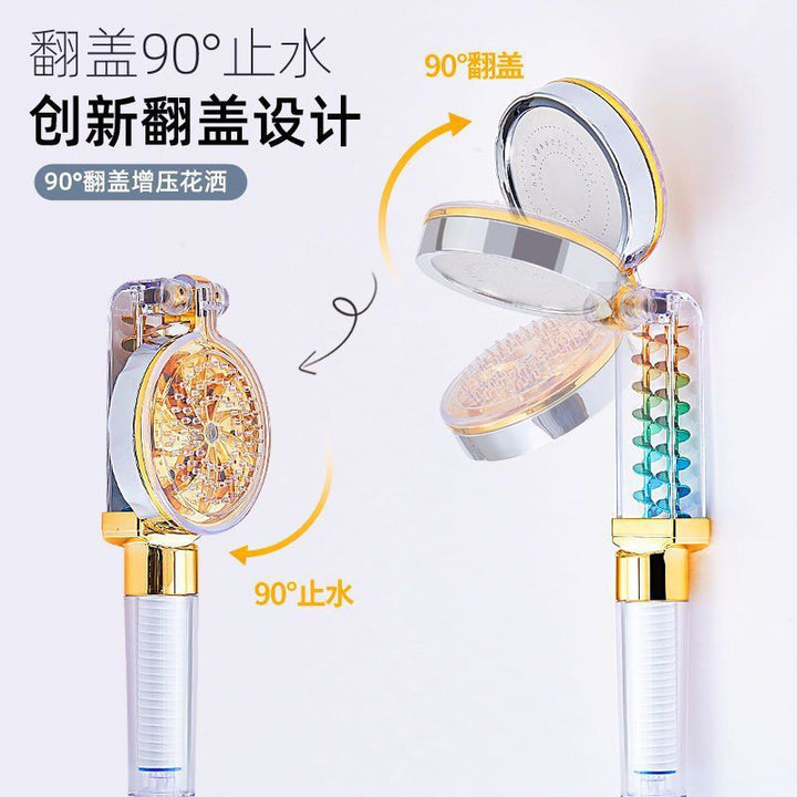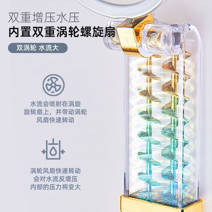 New clamshell water stop pressurized filter shower, twin turbocharged handheld nozzle bathroom water heater universal 4 points
