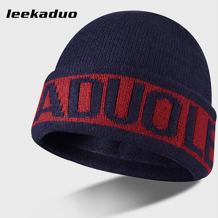 New core-spun yarn jacquard hat European and American letter knitted hat fleece warm hat casual sports pullover hat