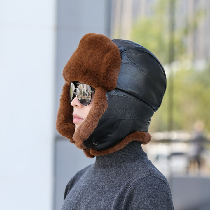 New cowhide Lei Feng hat windproof and cold-proof Northeast ear protection cotton hat piled and thickened winter fur warm hat