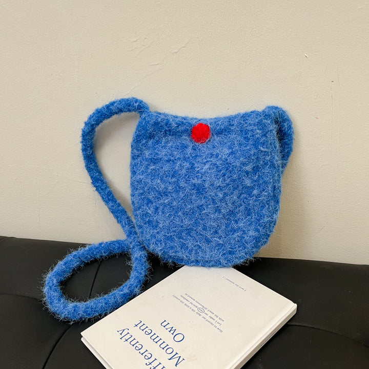 New cute plush bag autumn and winter fashion versatile women's shoulder bag solid color simple going out messenger mobile phone bag