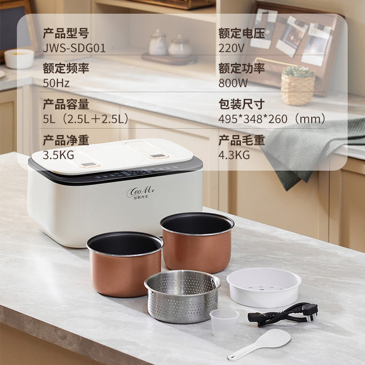 New double-gall rice cooker household 5L smart touch screen multi-functional one-piece double-spell cooking rice cooker gift delivery