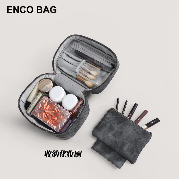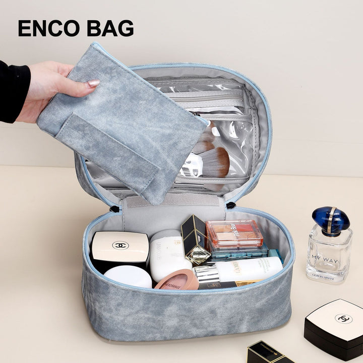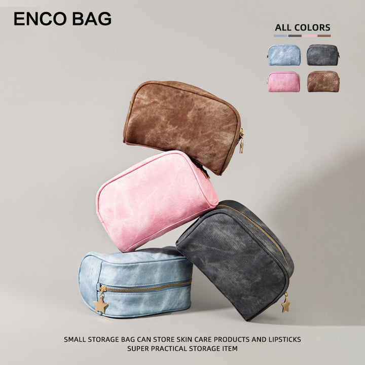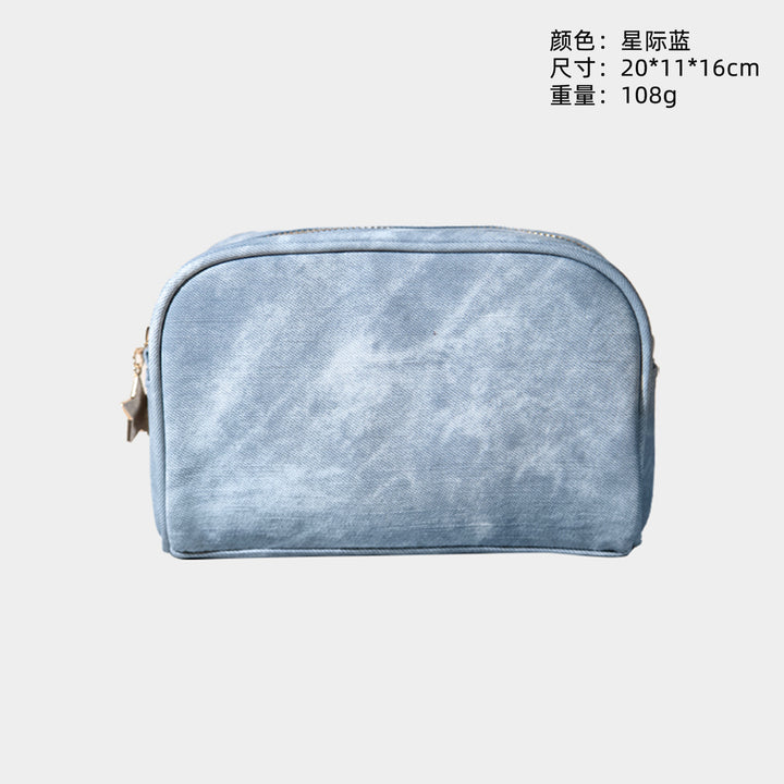New double-layer denim pattern cosmetic bag travel portable storage bag simple and practical toilet bag cosmetic bag large capacity