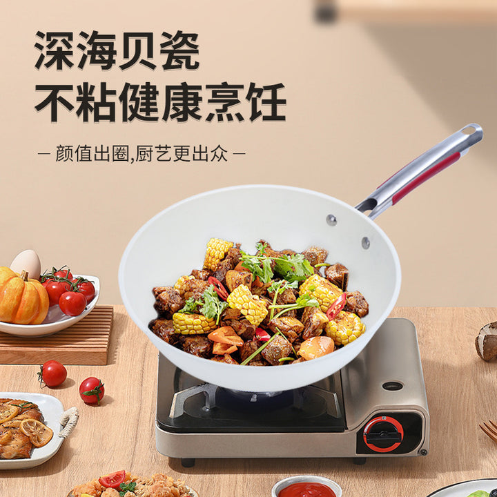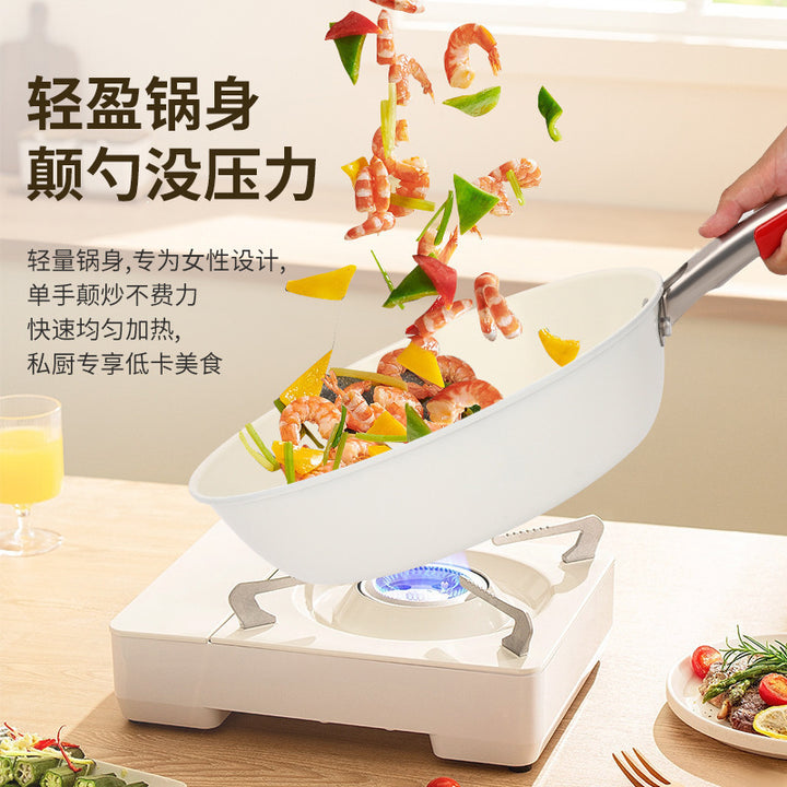 New enamel non-stick wok household wok frying pan pan gas stove suitable for small white pan