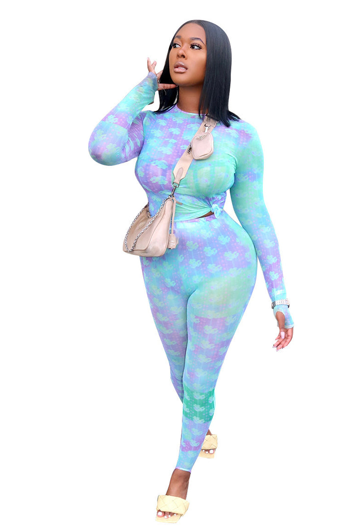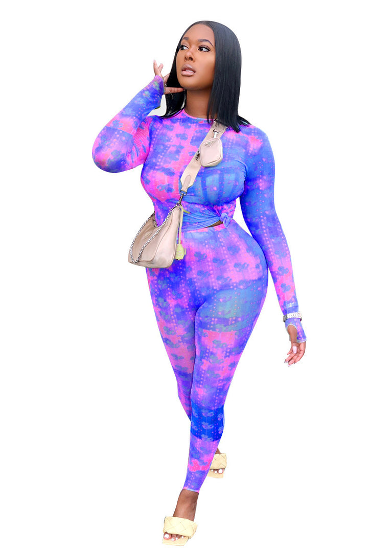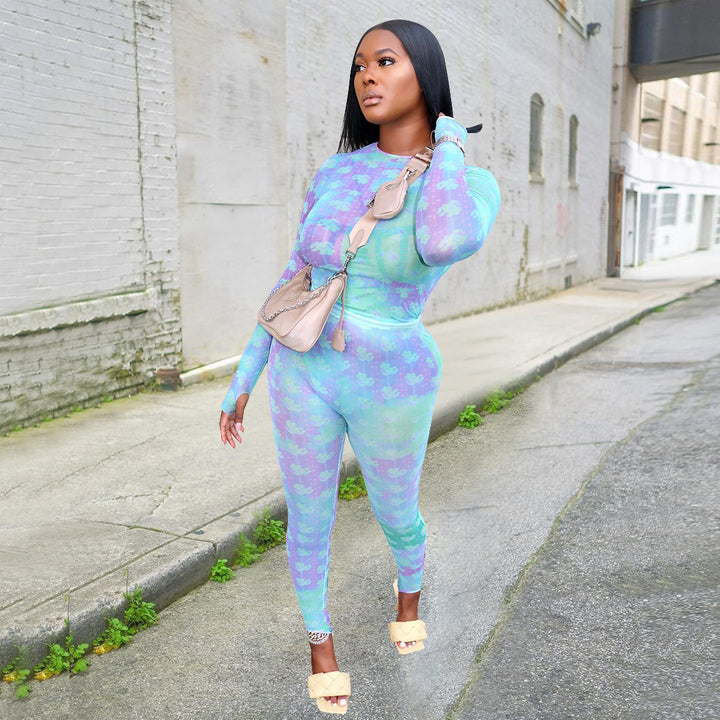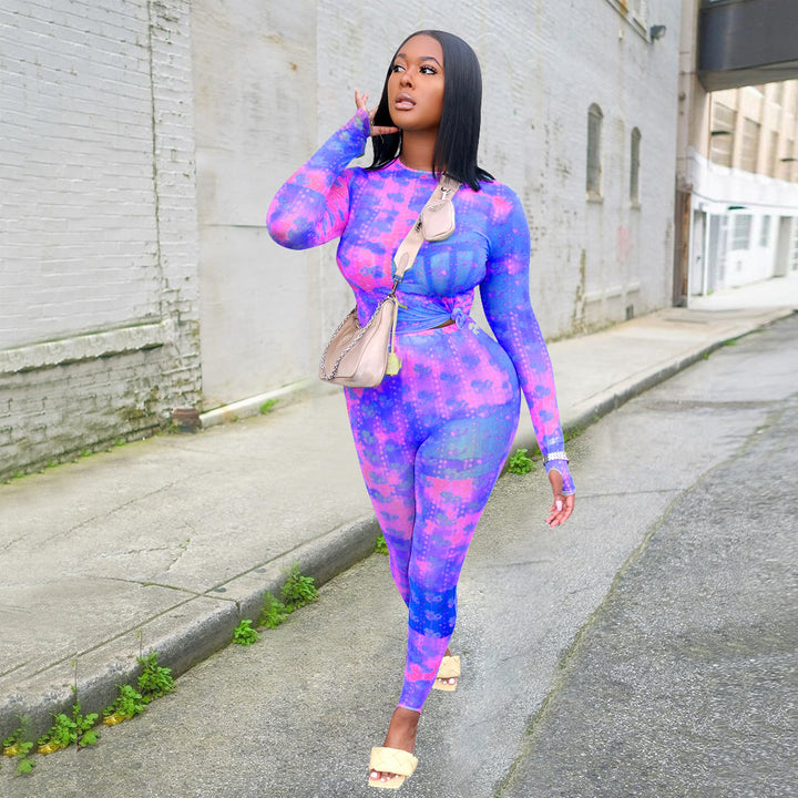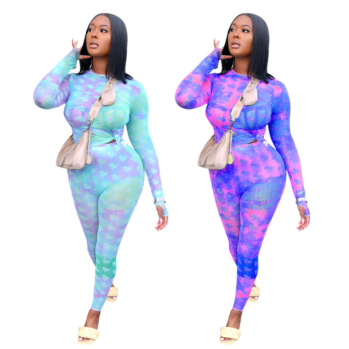 New European and American women's clothing autumn and winter long slim pants set, sexy casual...