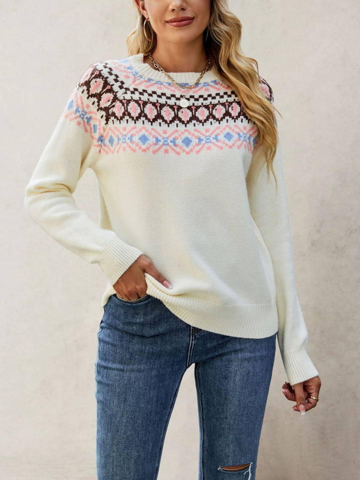 New European and American women's knitted sweater autumn and winter hot sale jacquard retro round neck pullover sweater