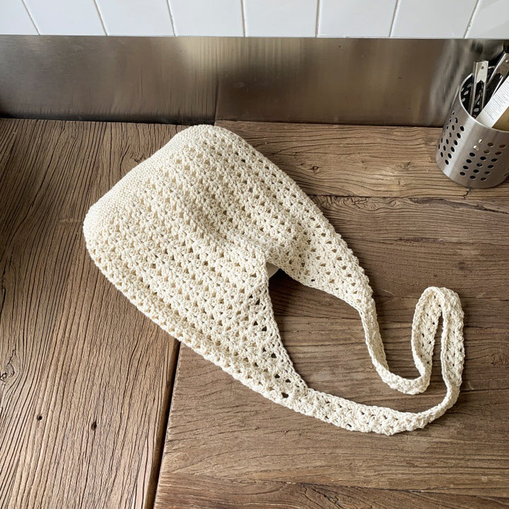 New fashionable solid color knitted hollow large-capacity shoulder bag Korean handmade tote bag holiday wind beach women's bag