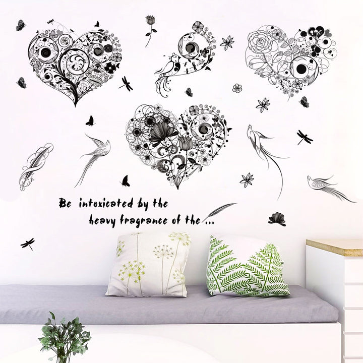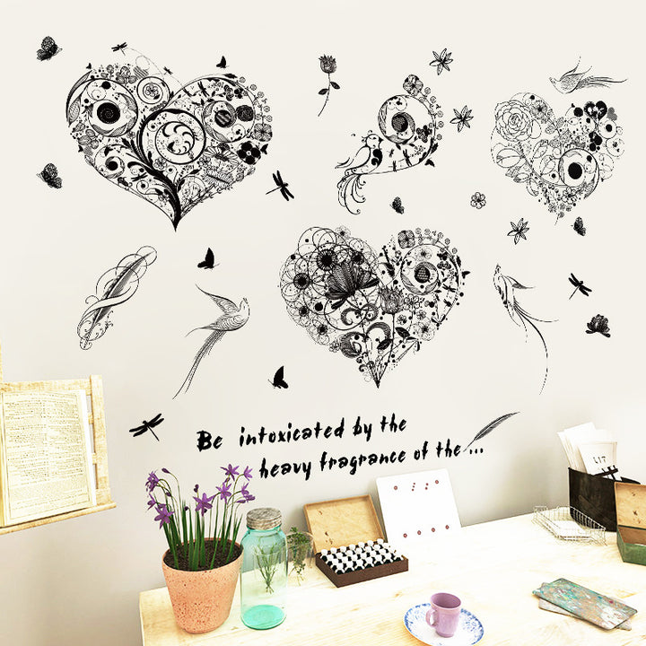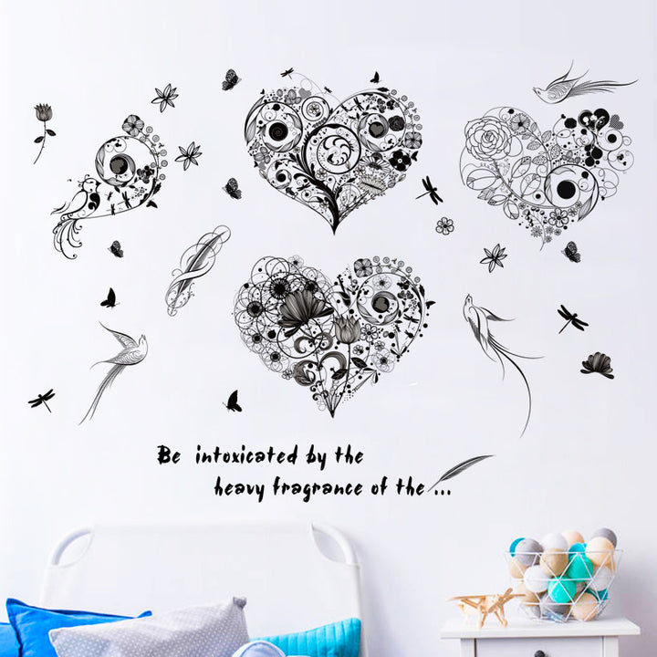New flower and bird dish heart wall sticker bedroom living room, window study TV sofa backgro...