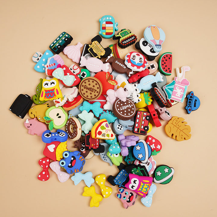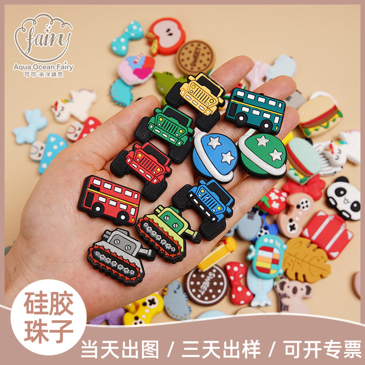 New food-grade molar beads, trolley-shaped jewelry loose beads, toothpaste beads, colorful cartoon pattern silicone beads