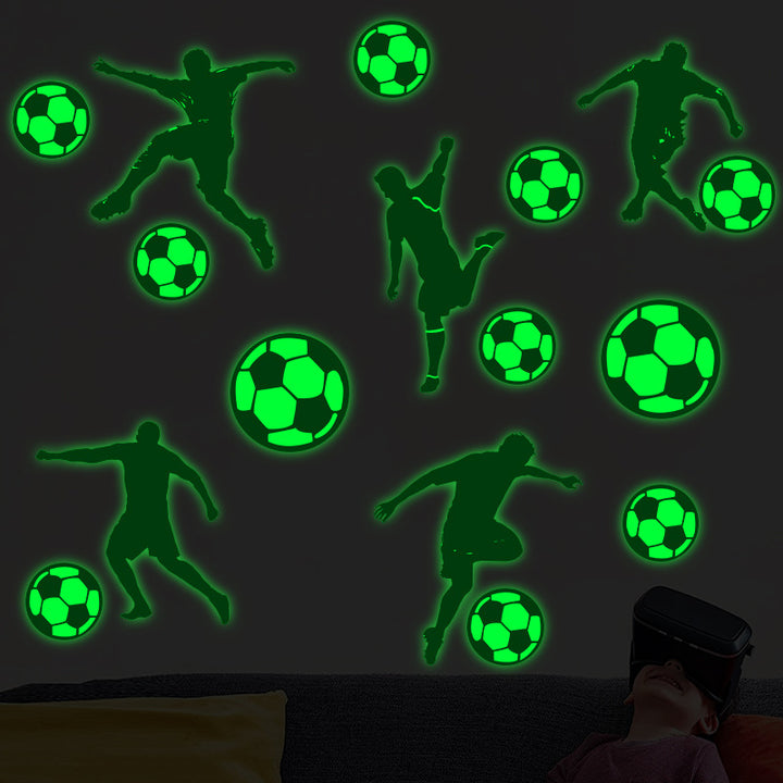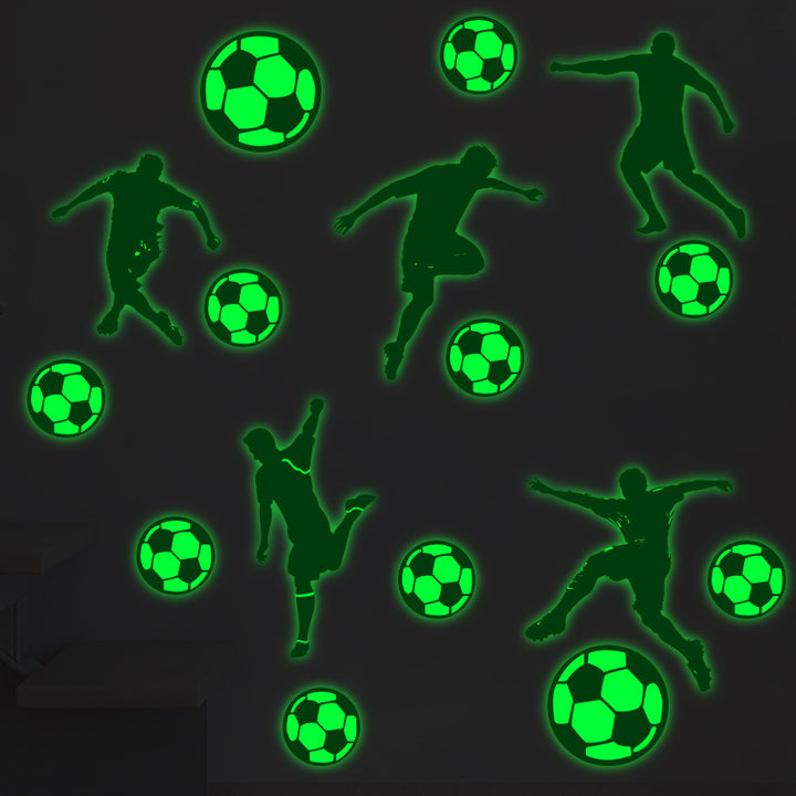 New football and character pattern luminous wall sticker, self-adhesive home decoration fluorescent removable wall sticker on the back