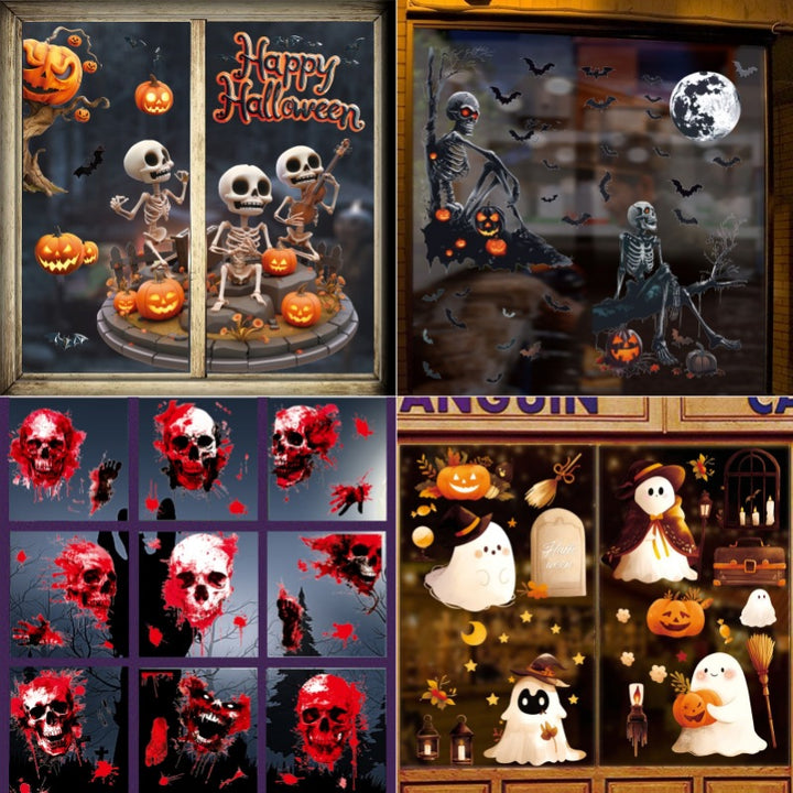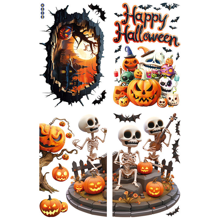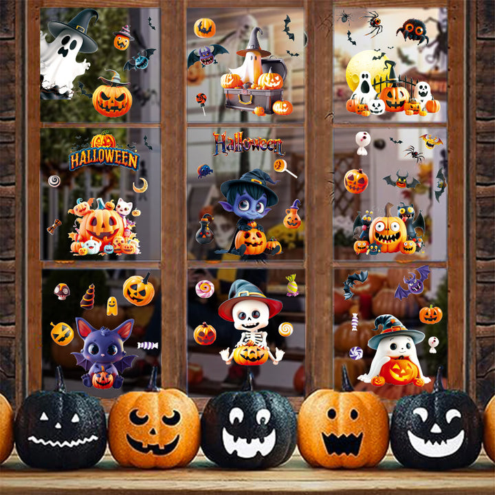 New Halloween 3D cute ghost pumpkin static sticker Halloween holiday party decorative glass w...