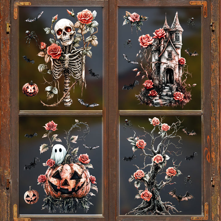New Halloween Ghost Pumpkin Glass Window Stickers Horror Skull Party Atmosphere Dress Up Home Window Stickers