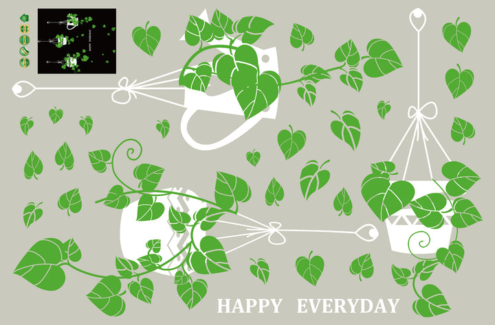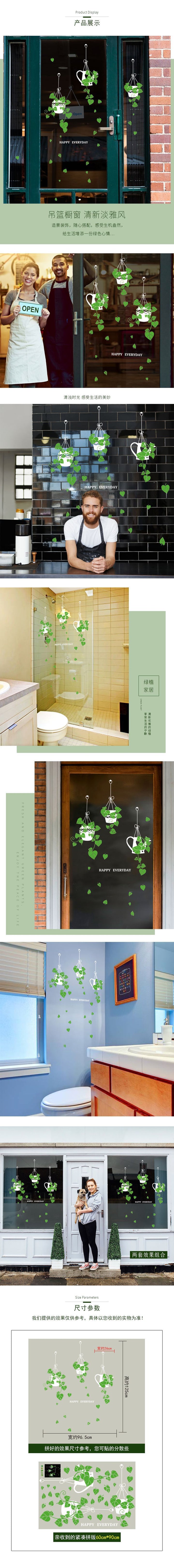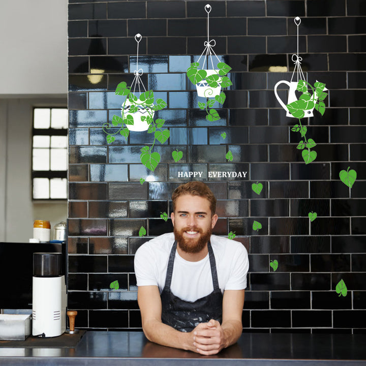 New hanging basket potted plants green plants sticker shop glass door window sticker cafe decorative wall sticker SK9343ds