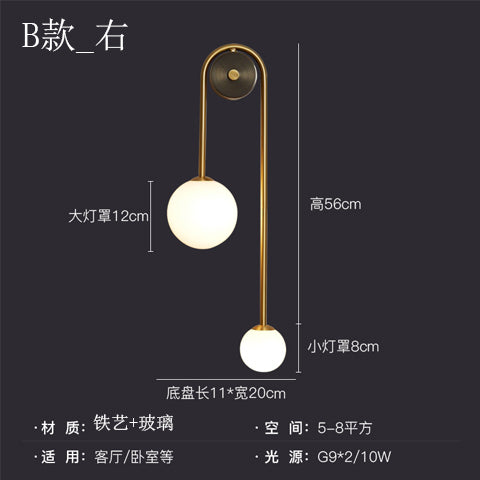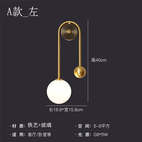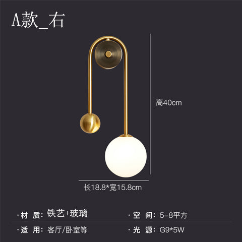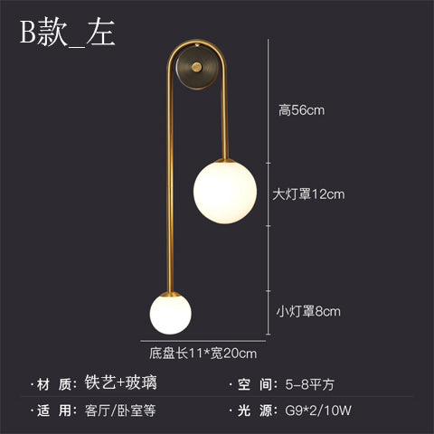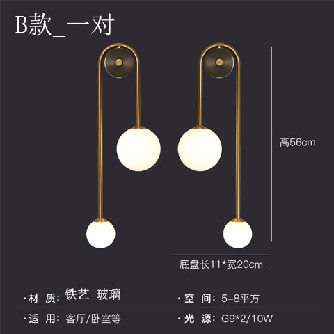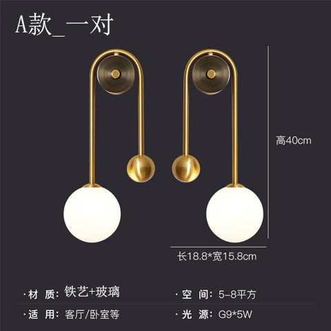 New high-end wrought iron bedroom bedside lamp light luxury creative minimalist wall lamp living room background wall Internet celebrity long wall ...