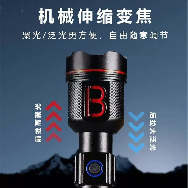New high-power flashlight can be used for remote lighting, household telescopic zoom rechargeable usb flashlight