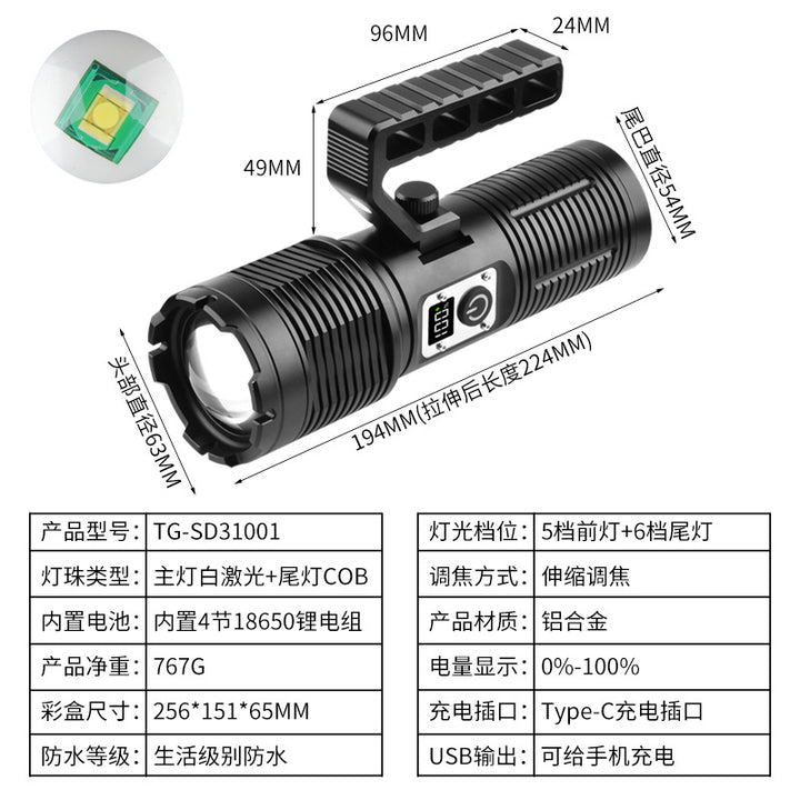 New high-power strong light flashlight super bright outdoor, white laser remote charging mult...
