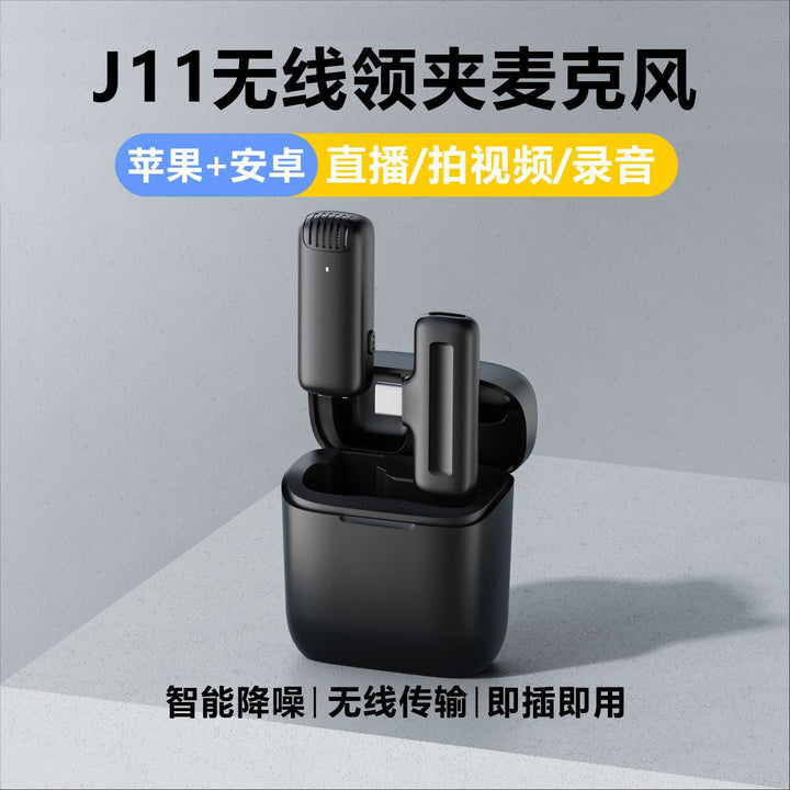 New J11 wireless microphone with charging storage case mobile phone live broadcast active noise reduction shooting video receiver