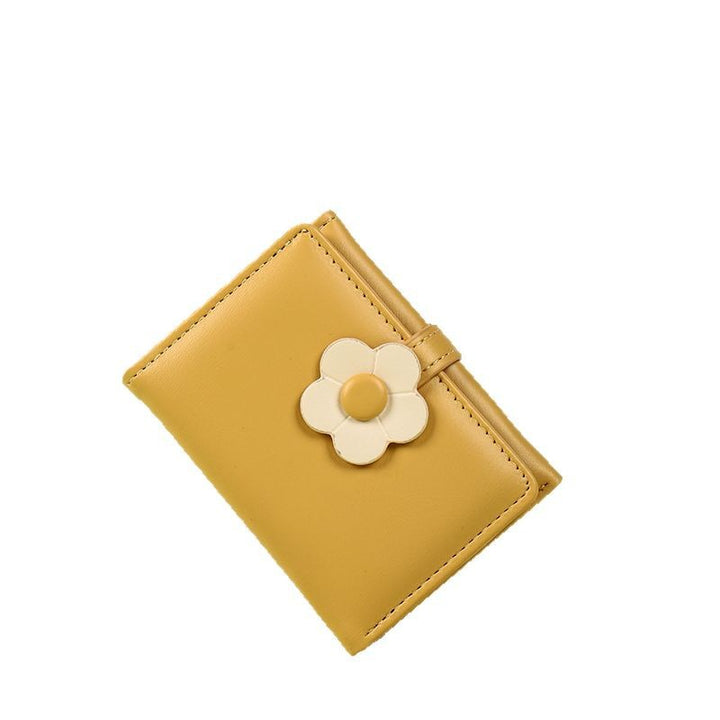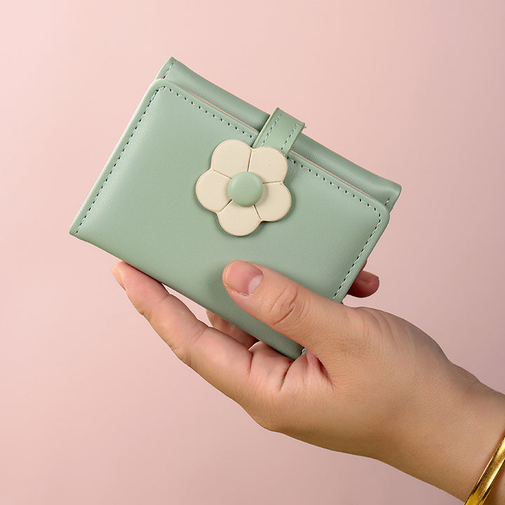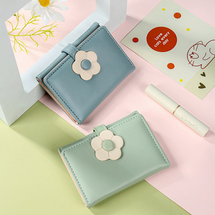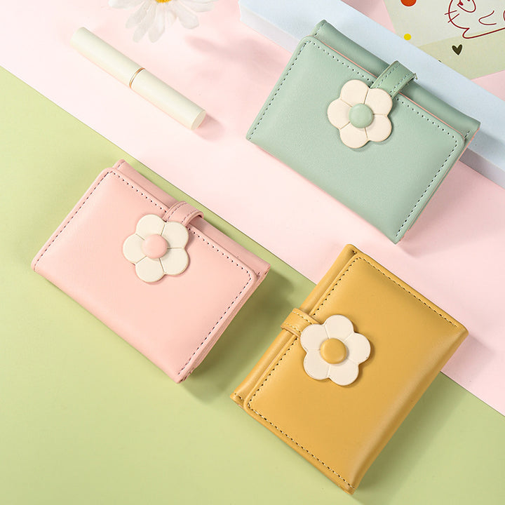 New Korean version fashionable simple short 30% off women's wallet ins trendy multi-card position cute small flower pu wallet