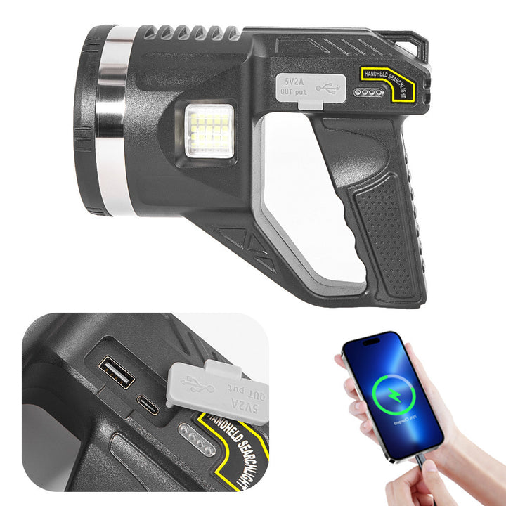 New L, ED strong light flashlight charging portable long battery life searchlight red and blue flashing emergency lighting big light cup