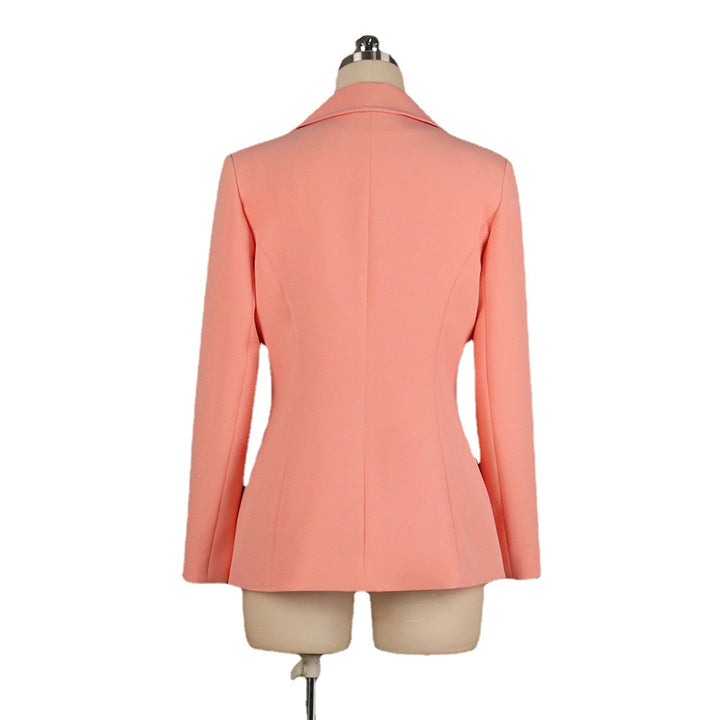 New lapel long-sleeved metal buckle cardigan high waist slim OL commuter professional wear, women's small suit Blazer