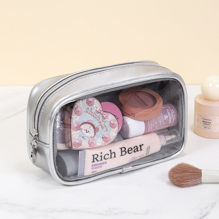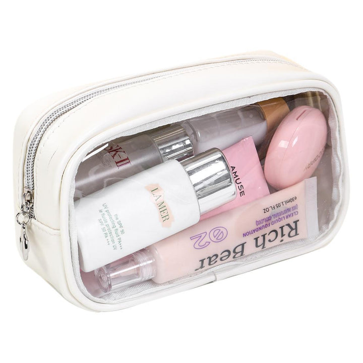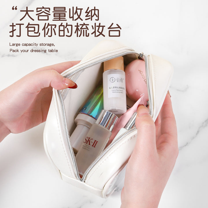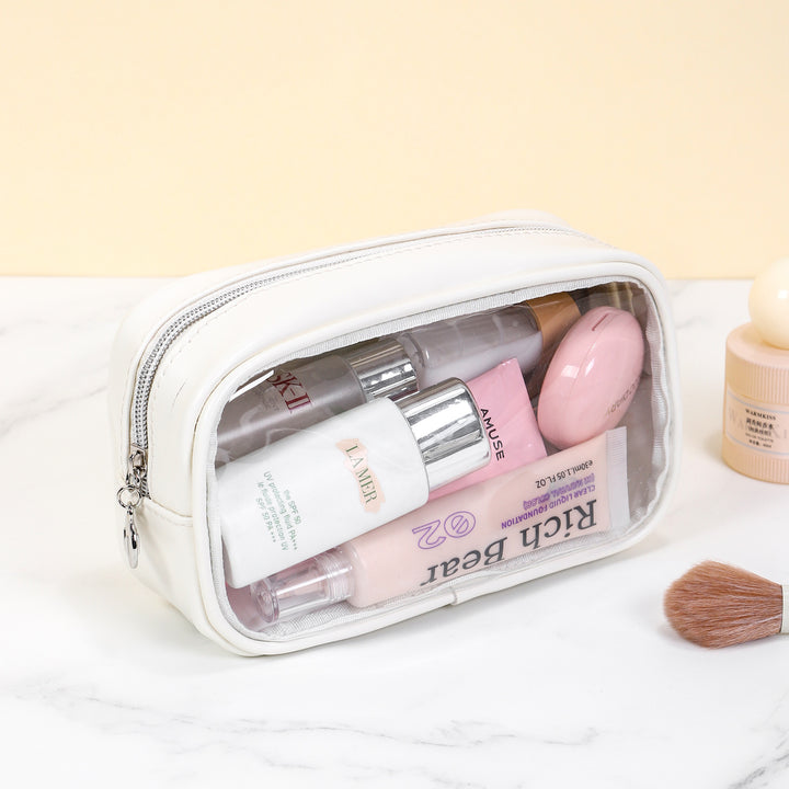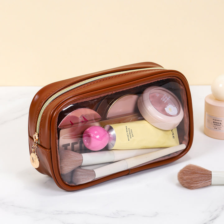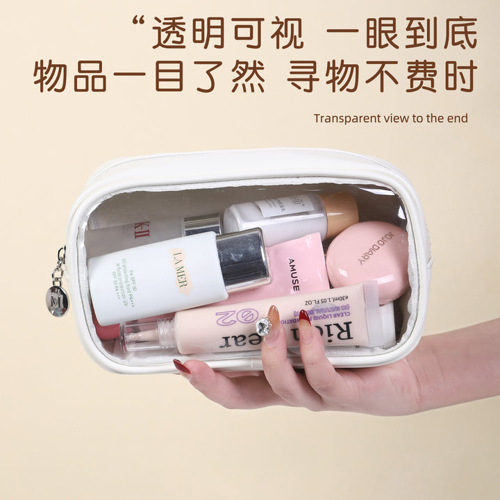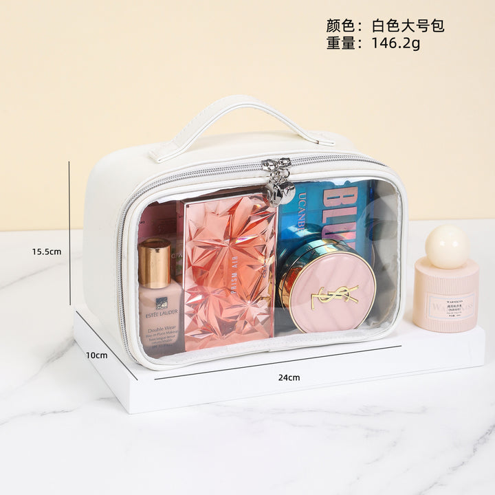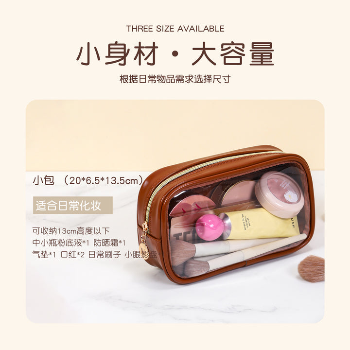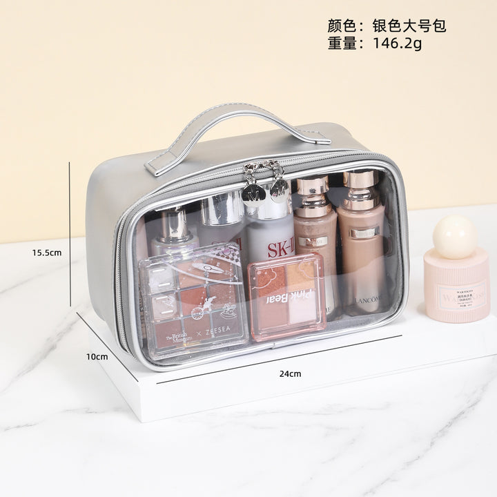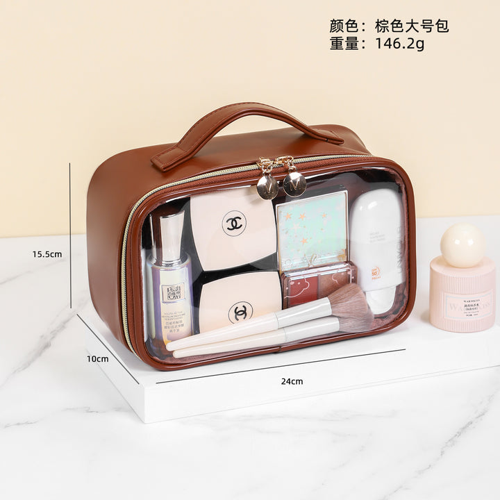 New leather translucent premium cosmetic bag large capacity waterproof portable toilet bag ha...