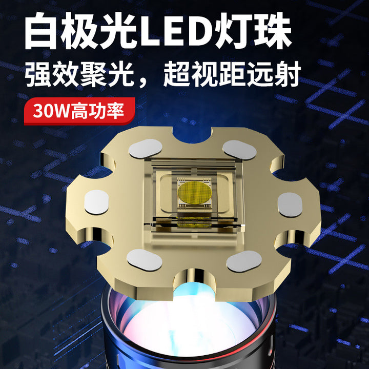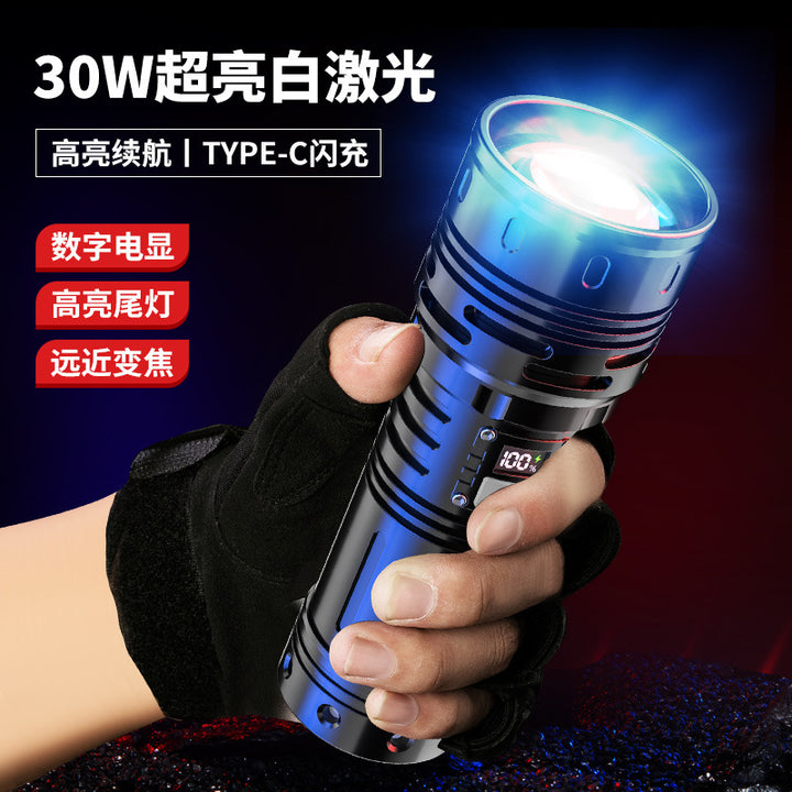 New LED digital electric display large-capacity white laser, rechargeable and output zoom aluminum alloy strong light flashlight