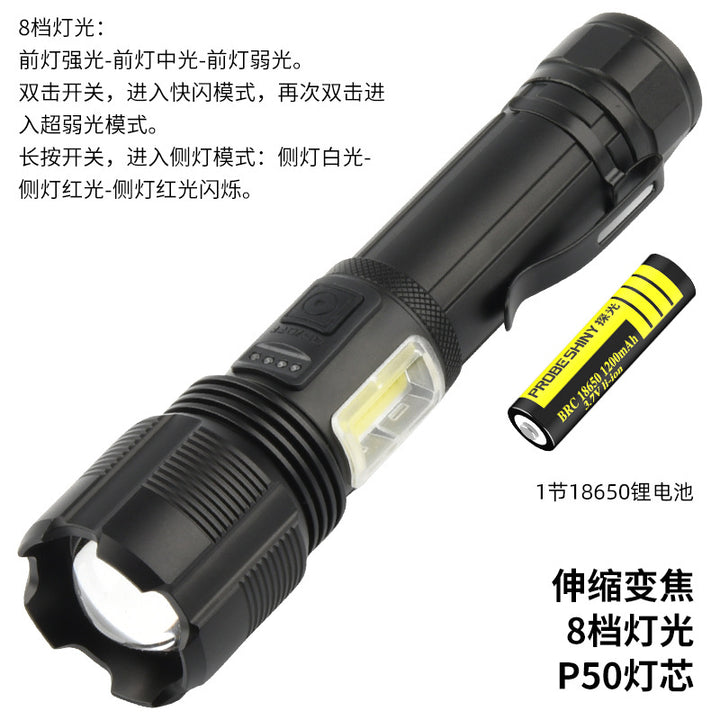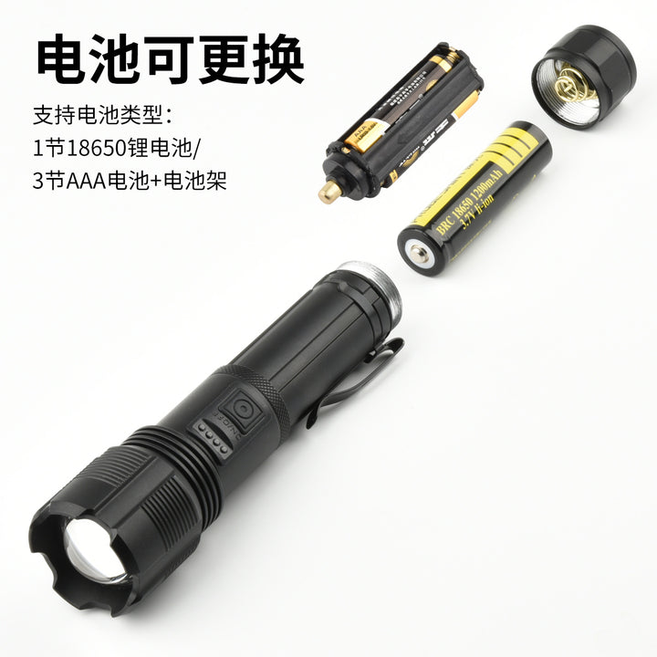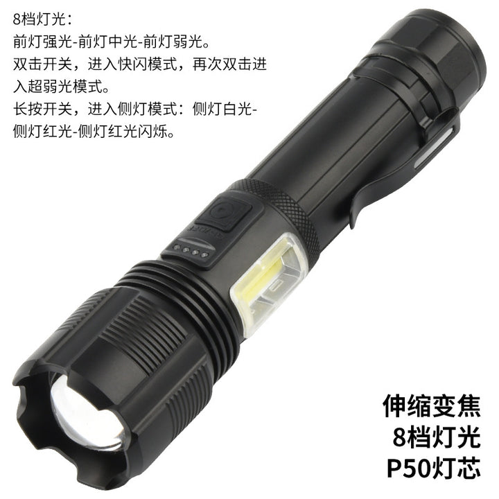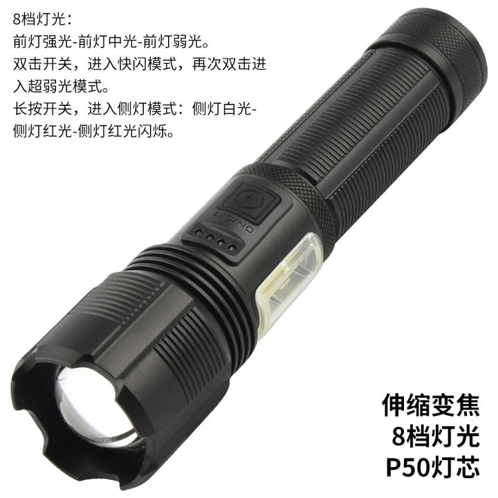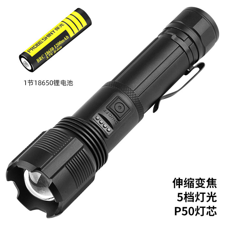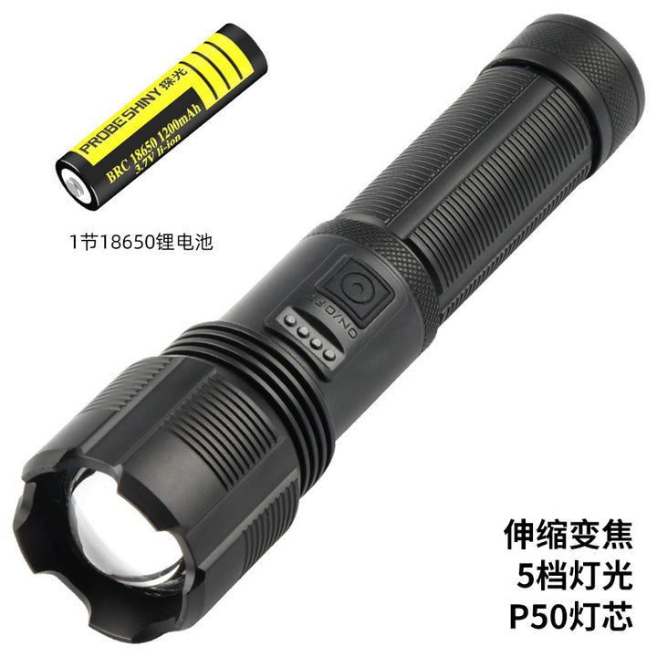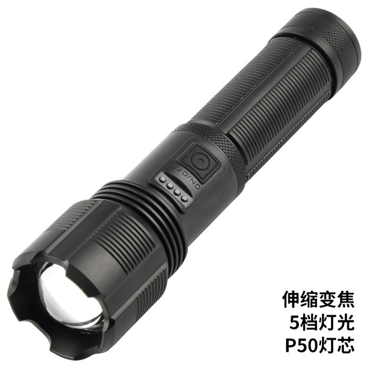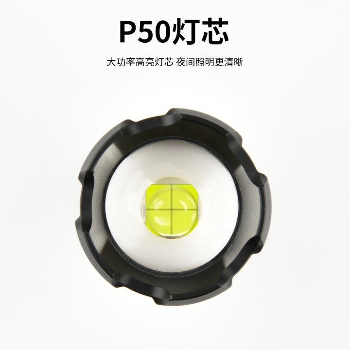 New LED flashlight Type-C rechargeable aluminum alloy tactical portable waterproof outdoor zoom strong light P50 flashlight