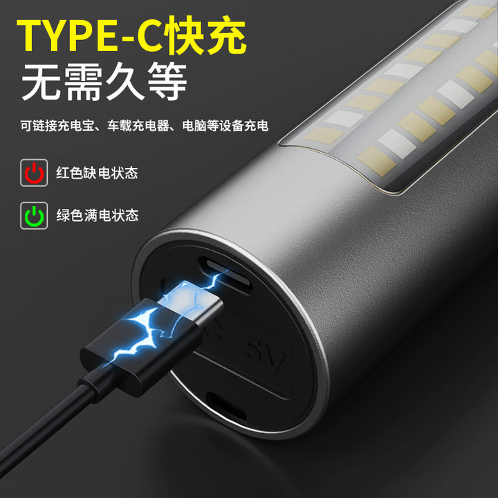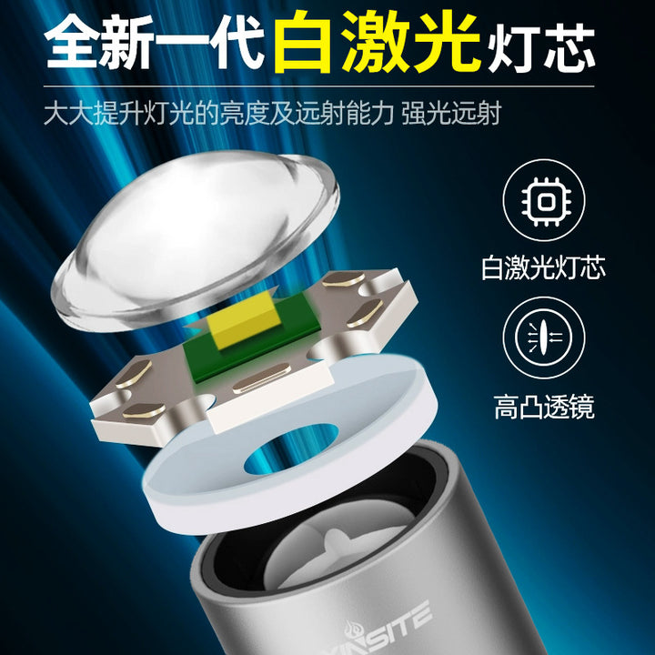 New LED flashlight white laser Type-C rechargeable aluminum alloy telescopic zoom explosive outdoor mini flashlight