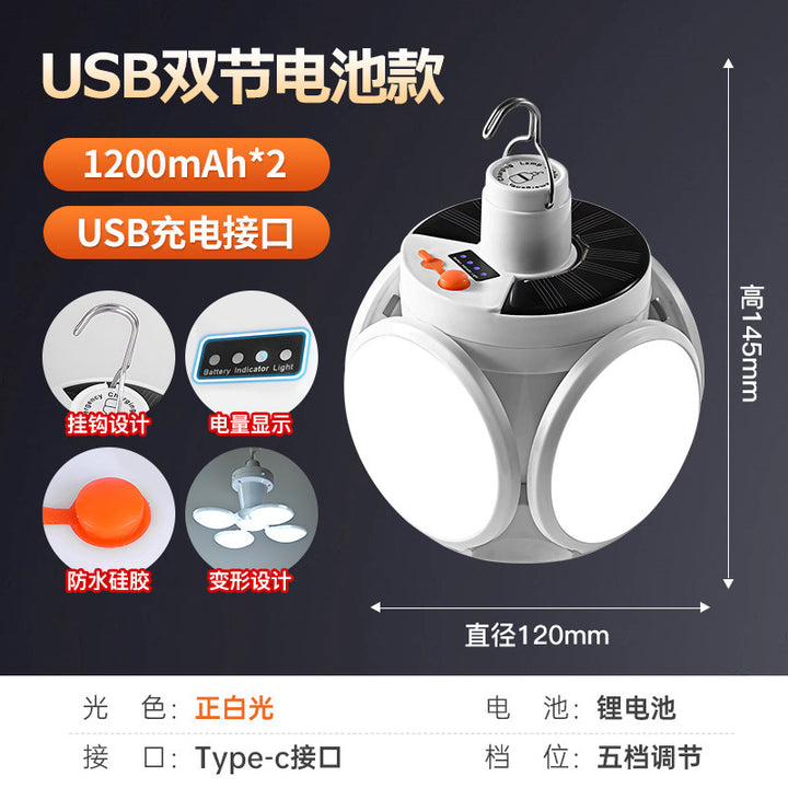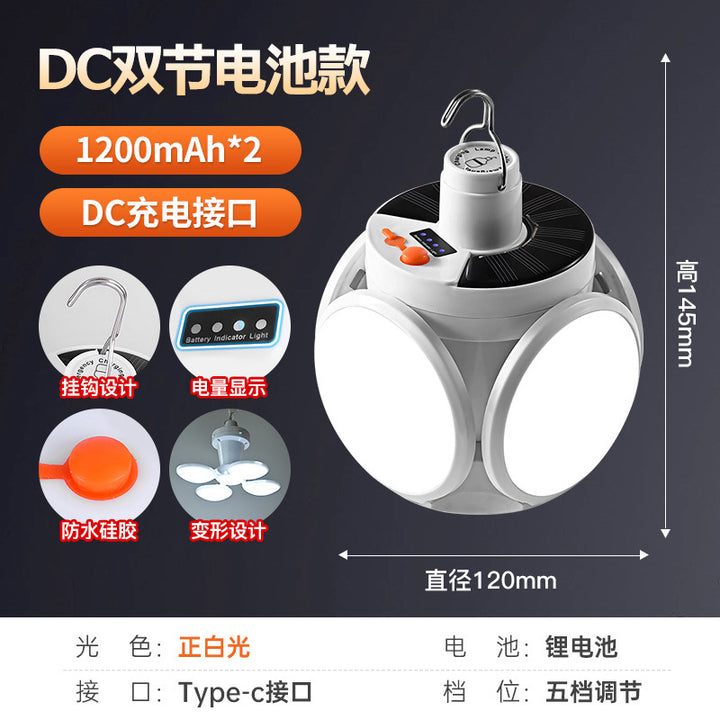 New led stall night market light solar multi-functional folding football light, power outage emergency energy-saving charging light bulb