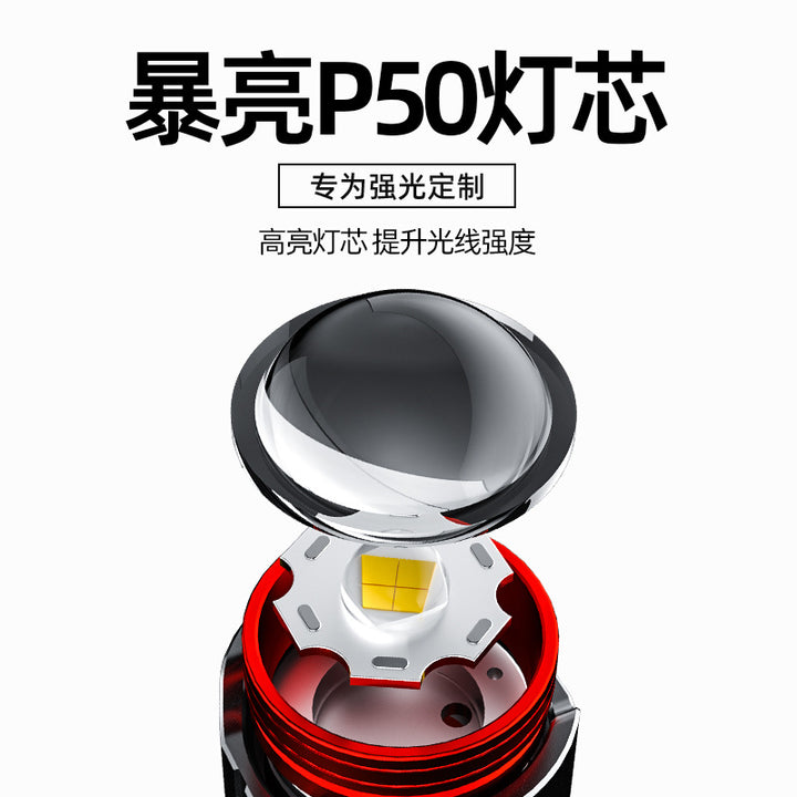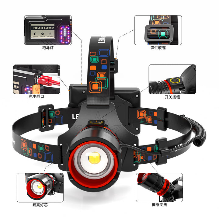 New lithium battery charging emergency light induction stretch zoom warning light outdoor LED night fishing light strong light headlight