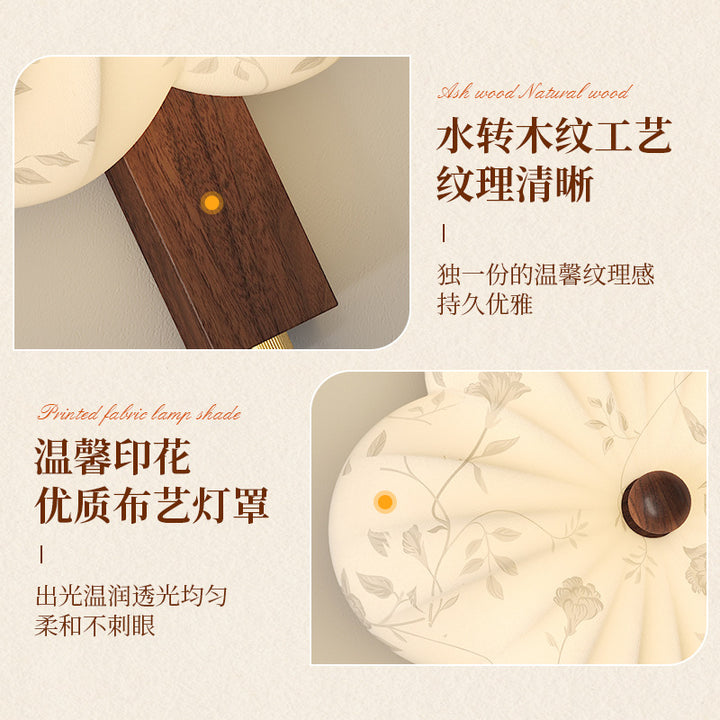 New medieval style printed fabric bedroom wall lamp, Song Dynasty aesthetics, new Chinese style full spectrum eye protection lamp, background wall ...