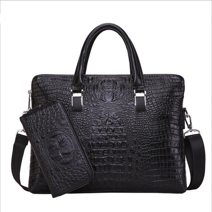 New men's bag crocodile pattern double pull handbag men's business briefcase fashion oblique span shoulder computer bag