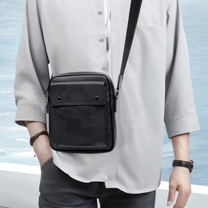 New men's bag fashionable horizontal leather men's shoulder bag casual mailman simple first layer cowhide messenger bag