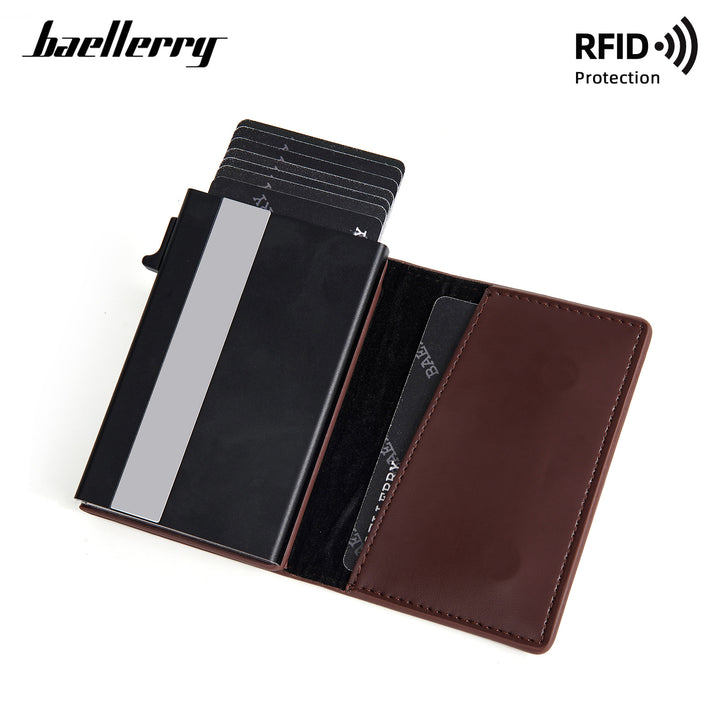 New men's senior sense baellerry side push zipper bag magnet aluminum box RFID elastic card type card bag card holder