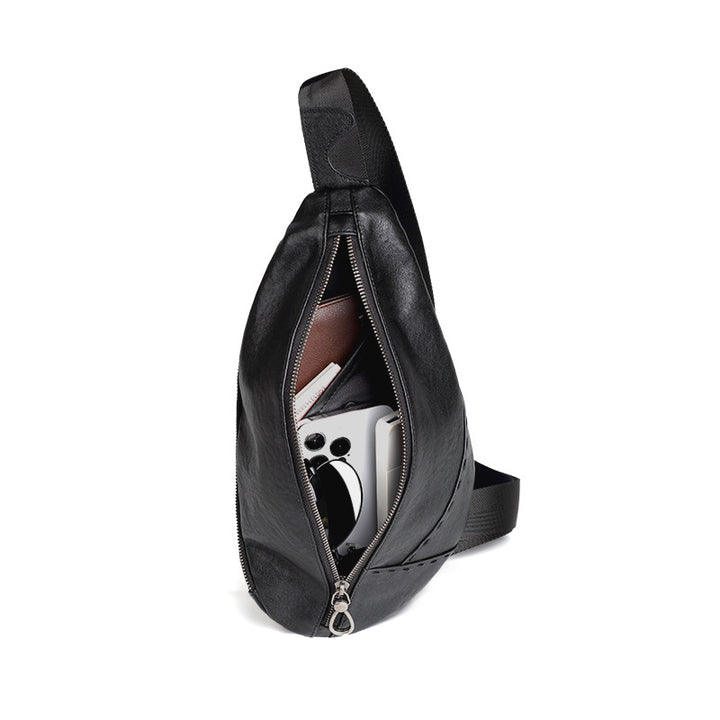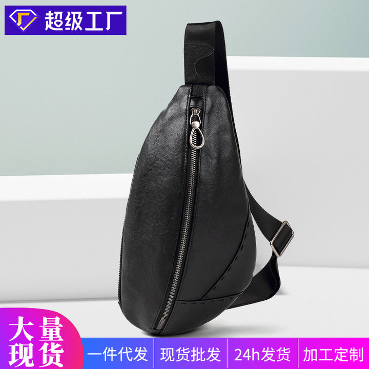 New men's vertical leather breast bag men's casual sports messenger bag retro first-layer cowhide shoulder bag men's bag